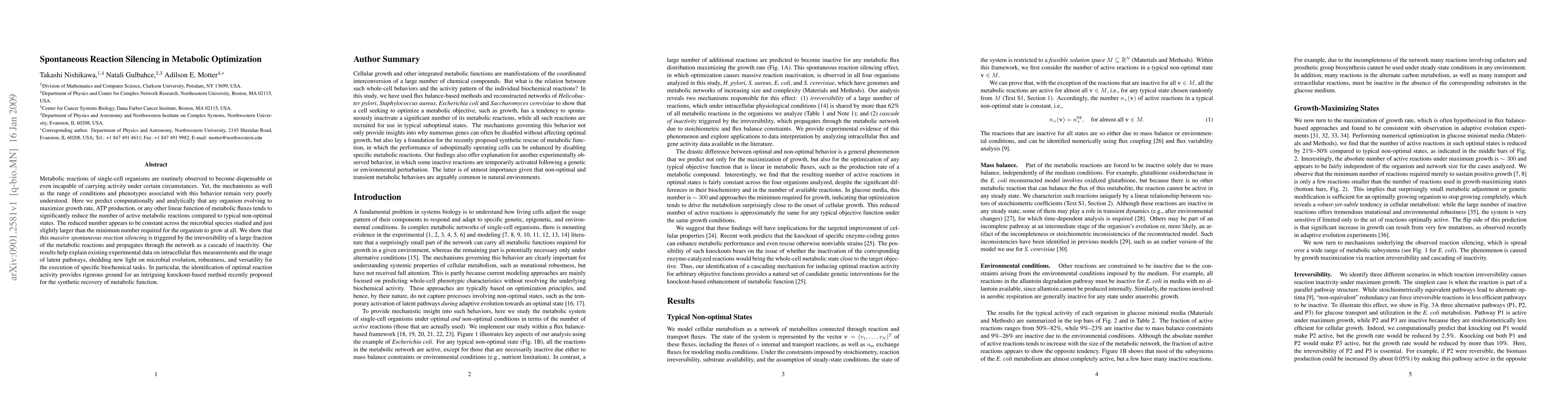 Metabolic reactions of single-cell organisms are routinely observed to become dispensable or even incapable of carrying activity under certain circumstances. Yet, the mechanisms as well as the range of conditions and phenotypes associated with this behavior remain very poorly understood. Here we predict computationally and analytically that any organism evolving to maximize growth rate, ATP production, or any other linear function of metabolic fluxes tends to significantly reduce the number of active metabolic reactions compared to typical non-optimal states. The reduced number appears to be constant across the microbial species studied and just slightly larger than the minimum number required for the organism to grow at all. We show that this massive spontaneous reaction silencing is triggered by the irreversibility of a large fraction of the metabolic reactions and propagates through the network as a cascade of inactivity. Our results help explain existing experimental data on intracellular flux measurements and the usage of latent pathways, shedding new light on microbial evolution, robustness, and versatility for the execution of specific biochemical tasks. In particular, the identification of optimal reaction activity provides rigorous ground for an intriguing knockout-based method recently proposed for the synthetic recovery of metabolic function.