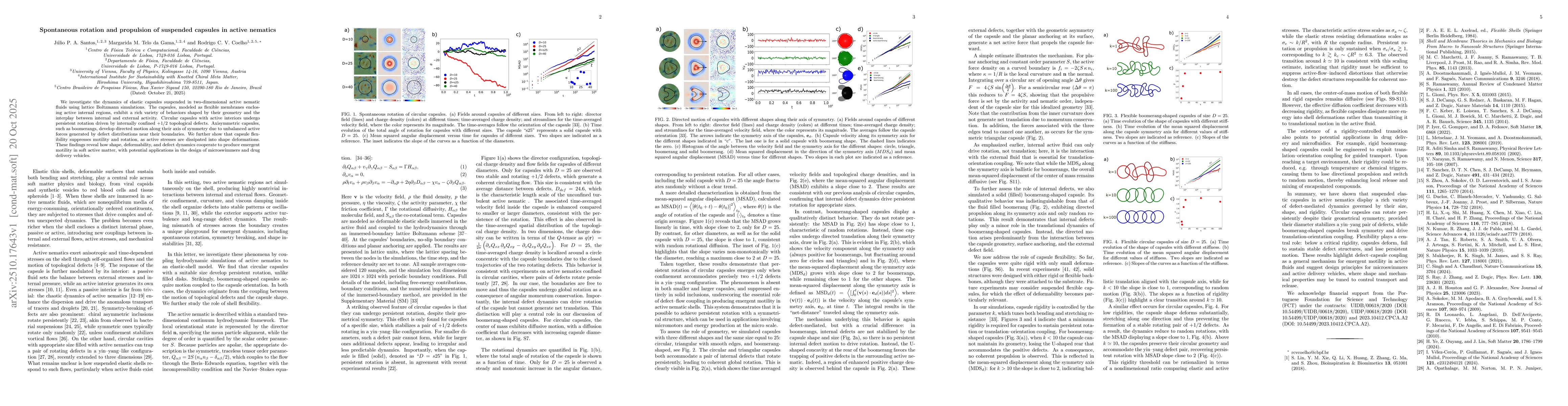 First demonstration of defect-mediated persistent rotation in symmetric capsules and directed motion in asymmetric capsules within active nematics.