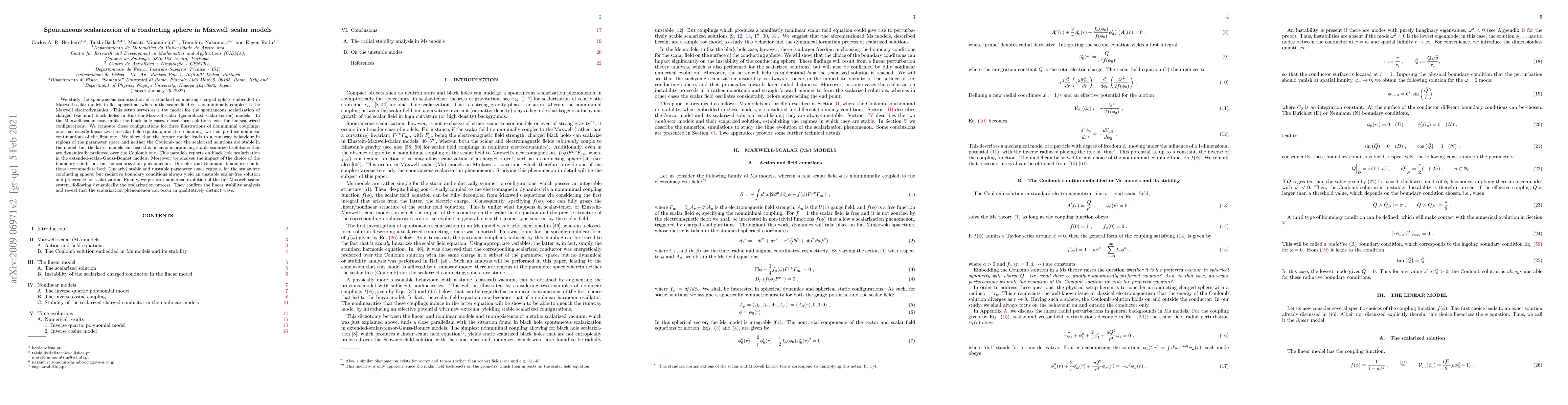 We study the spontaneous scalarization of a standard conducting charged sphere embedded in Maxwell-scalar models in flat spacetime, wherein the scalar field $\phi$ is nonminimally coupled to the Maxwell electrodynamics. This setup serves as a toy model for the spontaneous scalarization of charged (vacuum) black holes in Einstein-Maxwell-scalar (generalized scalar-tensor) models. In the Maxwell-scalar case, unlike the black hole cases, closed-form solutions exist for the scalarized configurations. We compute these configurations for three illustrations of nonminimal couplings: one that \textit{exactly} linearizes the scalar field equation, and the remaining two that produce nonlinear continuations of the first one. We show that the former model leads to a runaway behaviour in regions of the parameter space and neither the Coulomb nor the scalarized solutions are stable in the model; but the latter models can heal this behaviour producing stable scalarized solutions that are dynamically preferred over the Coulomb one. This parallels reports on black hole scalarization in the extended-scalar-Gauss-Bonnet models. Moreover, we analyse the impact of the choice of the boundary conditions on the scalarization phenomenon. Dirichlet and Neumann boundary conditions accommodate both (linearly) stable and unstable parameter space regions, for the scalar-free conducting sphere; but radiative boundary conditions always yield an unstable scalar-free solution and preference for scalarization. Finally, we perform numerical evolution of the full Maxwell-scalar system, following dynamically the scalarization process. They confirm the linear stability analysis and reveal that the scalarization phenomenon can occur in qualitatively distinct ways.