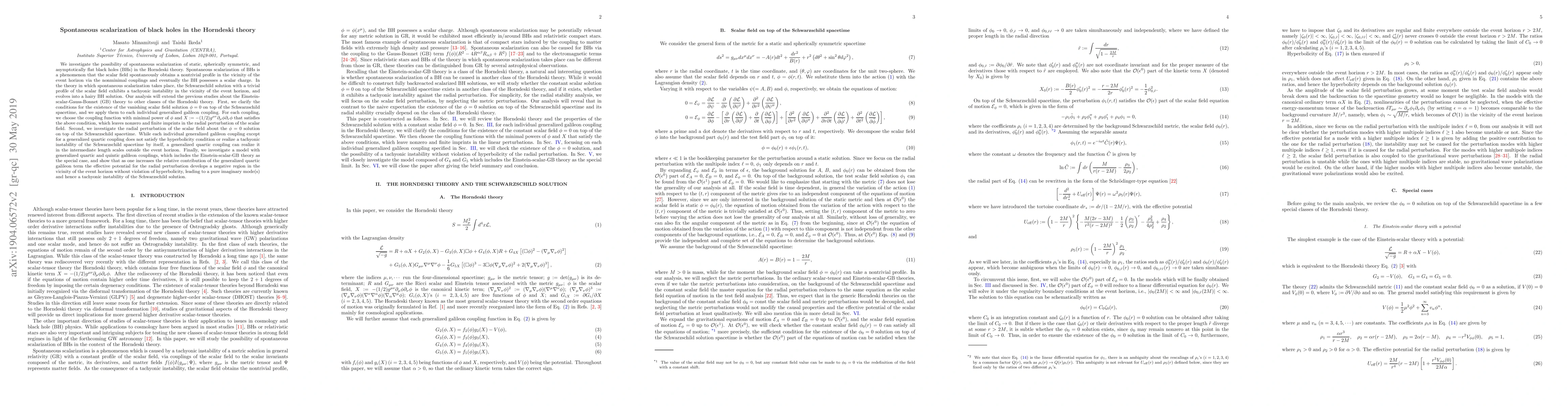 We investigate the possibility of spontaneous scalarization of static, spherically symmetric, and asymptotically flat black holes (BHs) in the Horndeski theory. Spontaneous scalarization of BHs is a phenomenon that the scalar field spontaneously obtains a nontrivial profile in the vicinity of the event horizon via the nonminimal couplings and eventually the BH possesses a scalar charge. In the theory in which spontaneous scalarization takes place, the Schwarzschild solution with a trivial profile of the scalar field exhibits a tachyonic instability in the vicinity of the event horizon, and evolves into a hairy BH solution. Our analysis will extend the previous studies about the Einstein-scalar-Gauss-Bonnet (GB) theory to other classes of the Horndeski theory. First, we clarify the conditions for the existence of the vanishing scalar field solution $\phi=0$ on top of the Schwarzschild spacetime, and we apply them to each individual generalized galileon coupling. For each coupling, we choose the coupling function with minimal power of $\phi$ and $X:=-(1/2)g^{\mu\nu}\partial_\mu\phi\partial_\nu\phi$ that satisfies the above condition, which leaves nonzero and finite imprints in the radial perturbation of the scalar field. Second, we investigate the radial perturbation of the scalar field about the $\phi=0$ solution on top of the Schwarzschild spacetime. While each individual generalized galileon coupling except for a generalized quartic coupling does not satisfy the hyperbolicity condition or realize a tachyonic instability of the Schwarzschild spacetime by itself, a generalized quartic coupling can realize it in the intermediate length scales outside the event horizon. Finally, we investigate a model with generalized quartic and quintic galileon couplings, which includes the Einstein-scalar-GB theory as the special case.