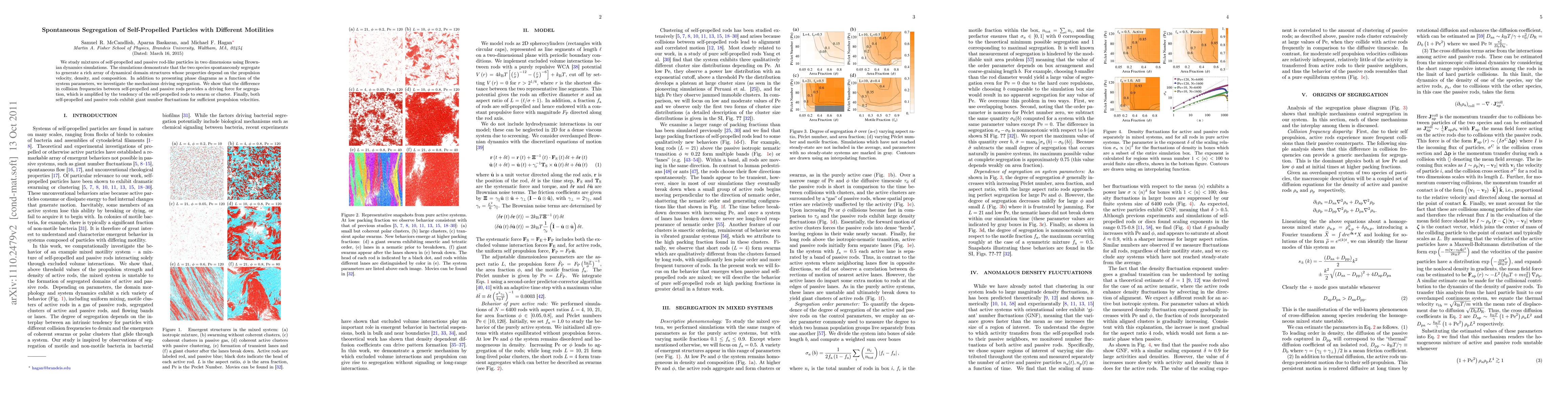 This paper investigates the spontaneous segregation of self-propelled and passive rod-like particles in two dimensions through Brownian dynamics simulations. The study reveals that differences in collision frequencies and the swarming behavior of self-propelled particles drive segregation, leading to complex dynamical structures.