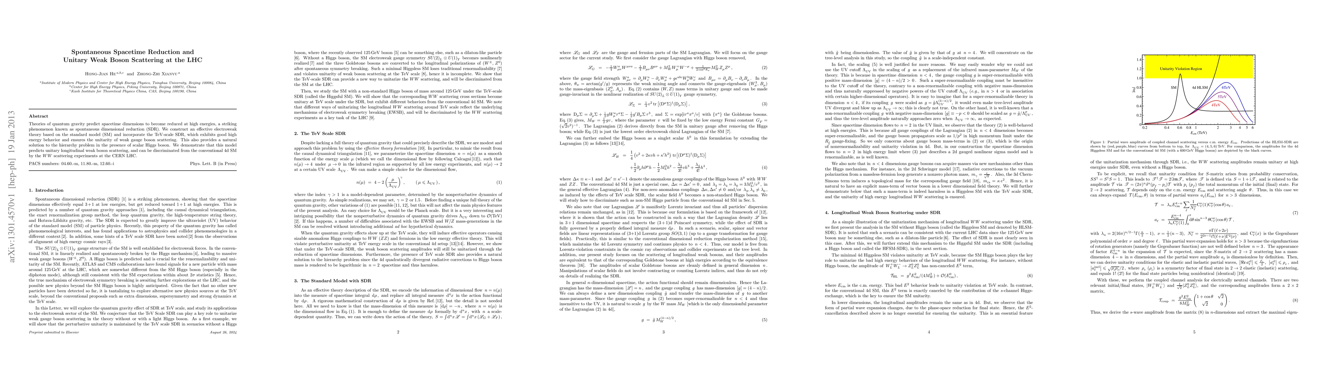 This paper proposes an effective electroweak theory incorporating spontaneous dimensional reduction (SDR) at high energies, ensuring unitarity in weak gauge boson scattering and resolving the hierarchy problem. Predictions include unitary longitudinal weak boson scattering observable in WW scattering experiments at the LHC.