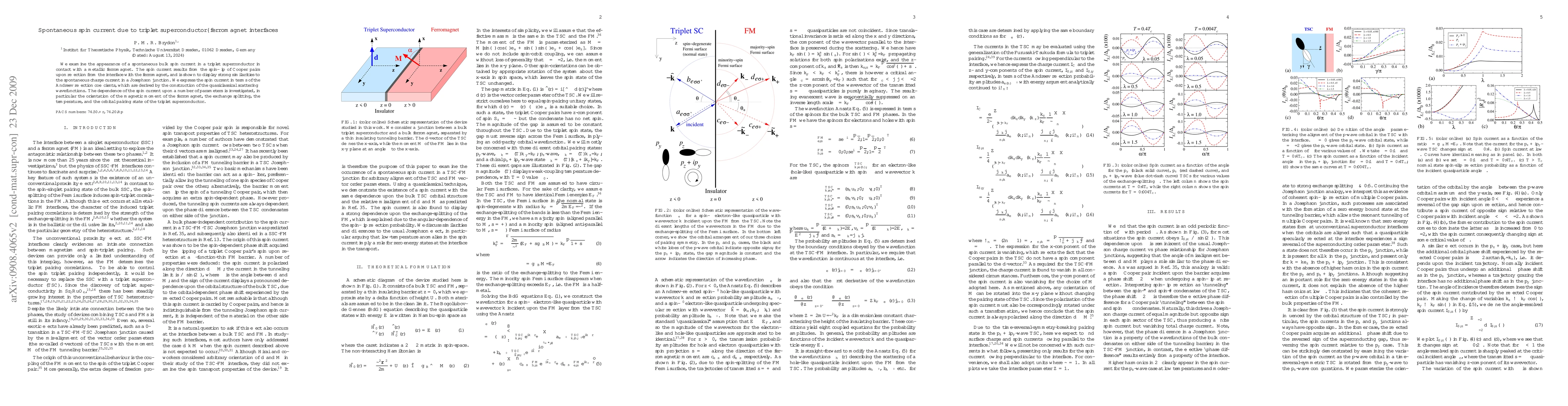 This paper investigates the spontaneous spin current in triplet superconductors interfacing with metallic ferromagnets, arising from Cooper pair spin-flip reflections at the interface. The spin current is expressed via Andreev reflection coefficients and analyzed concerning various parameters including ferromagnet orientation and temperature.