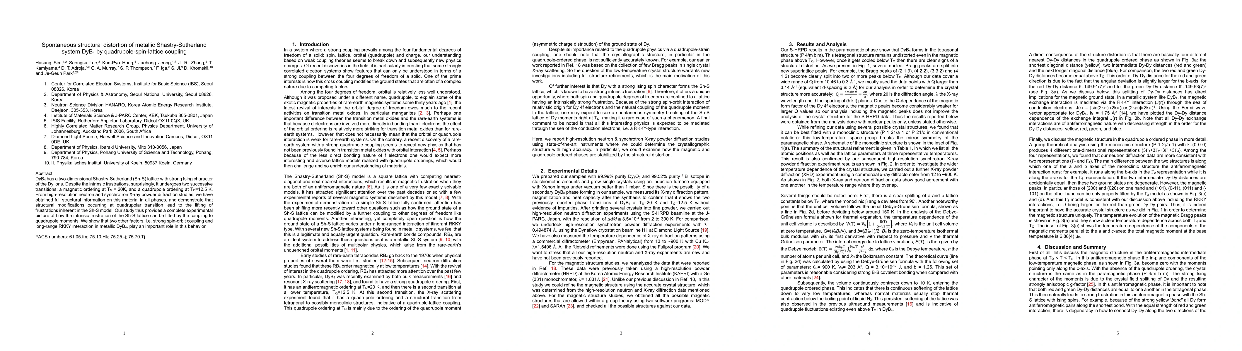 DyB4 has a two-dimensional Shastry-Sutherland (Sh-S) lattice with strong Ising character of the Dy ions. Despite the intrinsic frustrations, surprisingly, it undergoes two successive transitions: a magnetic ordering at TN = 20K, and a quadrupole ordering at TQ=12.5 K. From high-resolution neutron and synchrotron X-ray powder diffraction studies, we have obtained full structural information on this material in all phases, and demonstrate that structural modifications occurring at quadrupolar transition lead to the lifting of frustrations inherent in the Sh-S model. Our study thus provides a complete experimental picture of how the intrinsic frustration of the Sh-S lattice can be lifted by the coupling to quadrupole moments. We show that two other factors, i.e. strong spin-orbit coupling and long-range RKKY interaction in metallic DyB4, play an important role in this behavior.