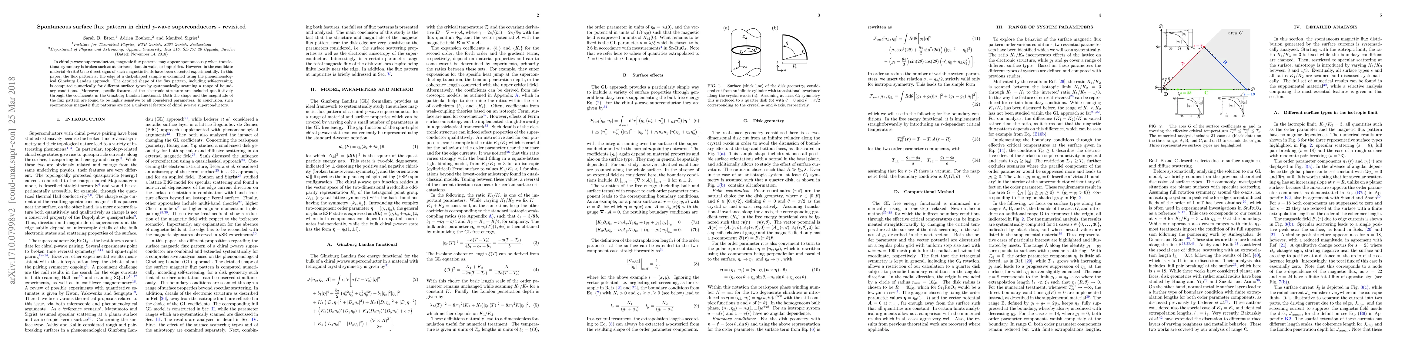 In chiral $p$-wave superconductors, magnetic flux patterns may appear spontaneously when translational symmetry is broken such as at surfaces, domain walls, or impurities. However, in the candidate material Sr$_2$RuO$_4$ no direct signs of such magnetic fields have been detected experimentally. In this paper, the flux pattern at the edge of a disk-shaped sample is examined using the phenomenological Ginzburg Landau approach. The detailed shape of the flux pattern, including self-screening, is computed numerically for different surface types by systematically scanning a range of boundary conditions. Moreover, specific features of the electronic structure are included qualitatively through the coefficients in the Ginzburg Landau functional. Both the shape and the magnitude of the flux pattern are found to be highly sensitive to all considered parameters. In conclusion, such spontaneous magnetic flux patterns are not a universal feature of chiral $p$-wave superconductors.