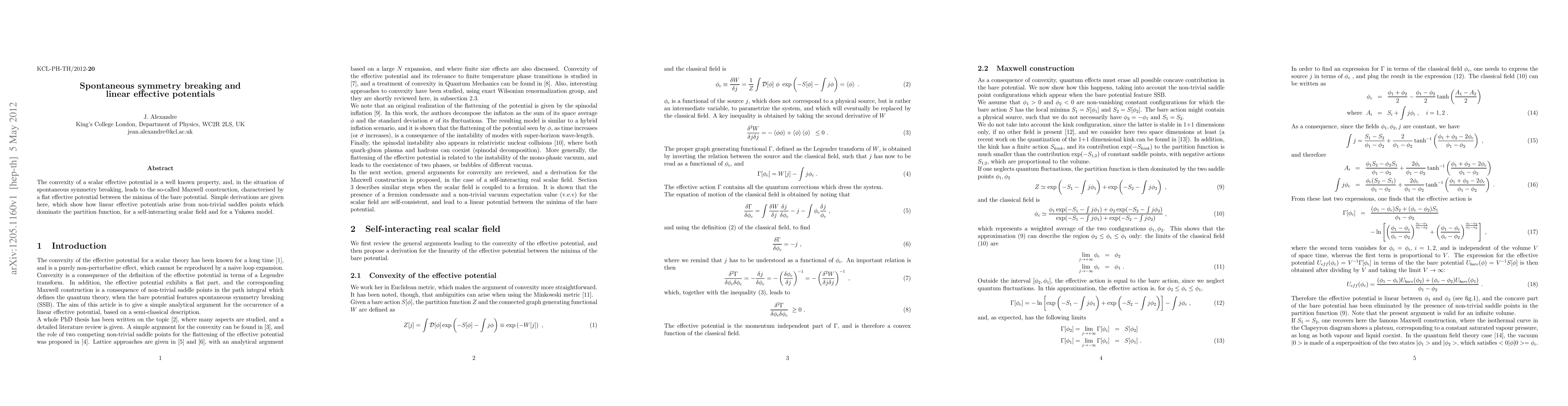 This paper explores how linear effective potentials emerge from non-trivial saddle points in self-interacting scalar fields and Yukawa models, emphasizing the convexity property leading to spontaneous symmetry breaking and the Maxwell construction. Simple derivations are provided to illustrate these phenomena.