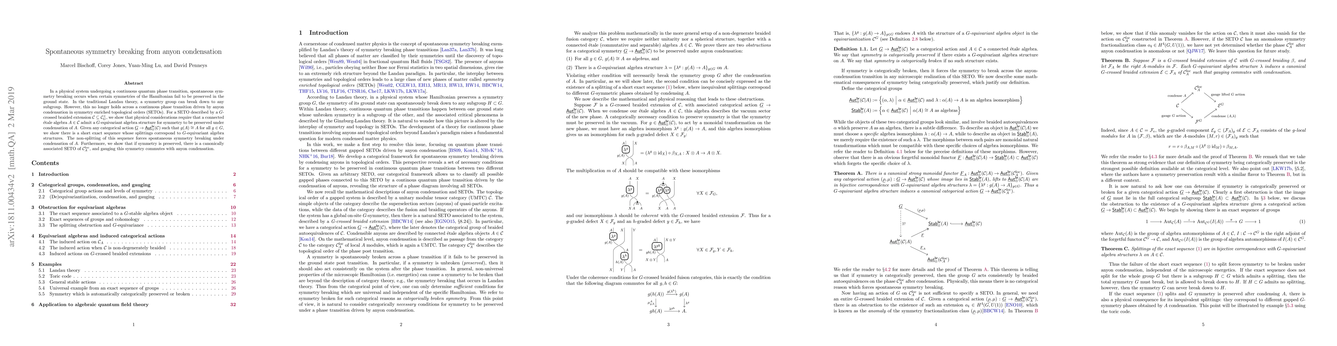 This paper explores how spontaneous symmetry breaking occurs in the context of continuous quantum phase transitions driven by anyon condensation in symmetry enriched topological orders (SETOs). It demonstrates that symmetry preservation under anyon condensation requires a $G$-equivariant algebra structure, and the non-splitting of a specific short exact sequence leads to spontaneous symmetry breaking.