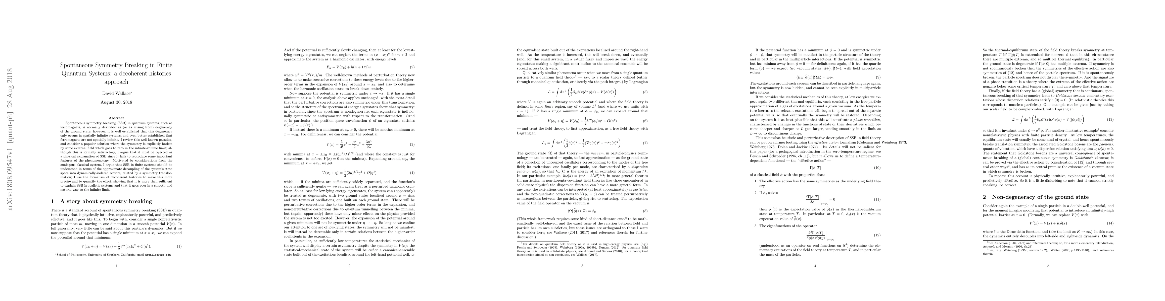This paper proposes a new understanding of spontaneous symmetry breaking in finite quantum systems, suggesting it arises from the decoupling of system states into dynamically-isolated sectors related by a symmetry transformation. It uses decoherent histories to quantify this effect, showing it explains SSB in realistic systems and smoothly approaches the infinite limit.