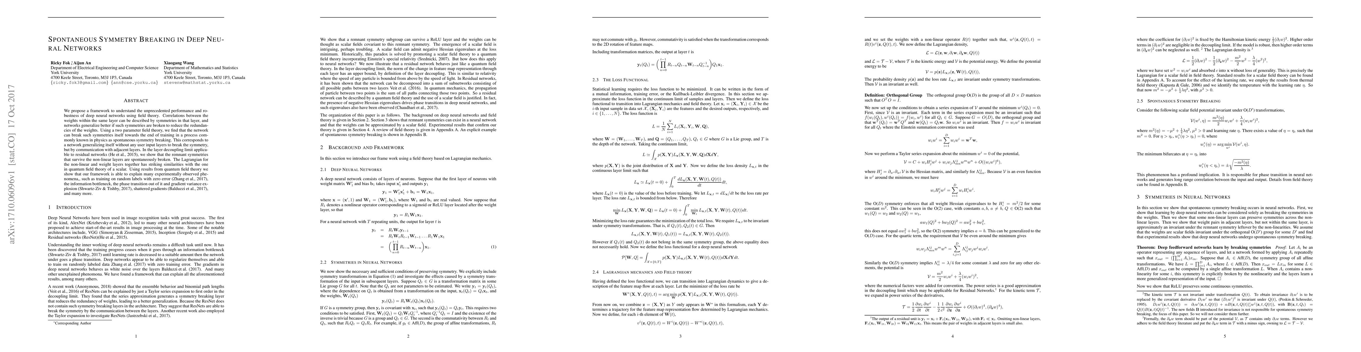 Researchers propose a framework to explain deep neural networks' performance and robustness using field theory, finding that networks spontaneously break symmetries during training for better generalization.