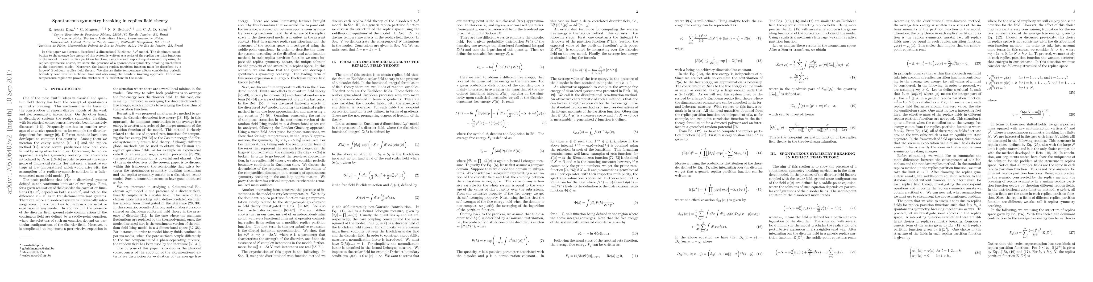 This research paper explores the spontaneous symmetry breaking in a disordered $d$-dimensional $\lambda\varphi^{4}$ model through replica field theory, demonstrating its presence via replica symmetric ansatz and large-$N$ Euclidean replica field theory. It also examines finite temperature effects and proves the existence of $N$ instantons in the low temperature regime.
