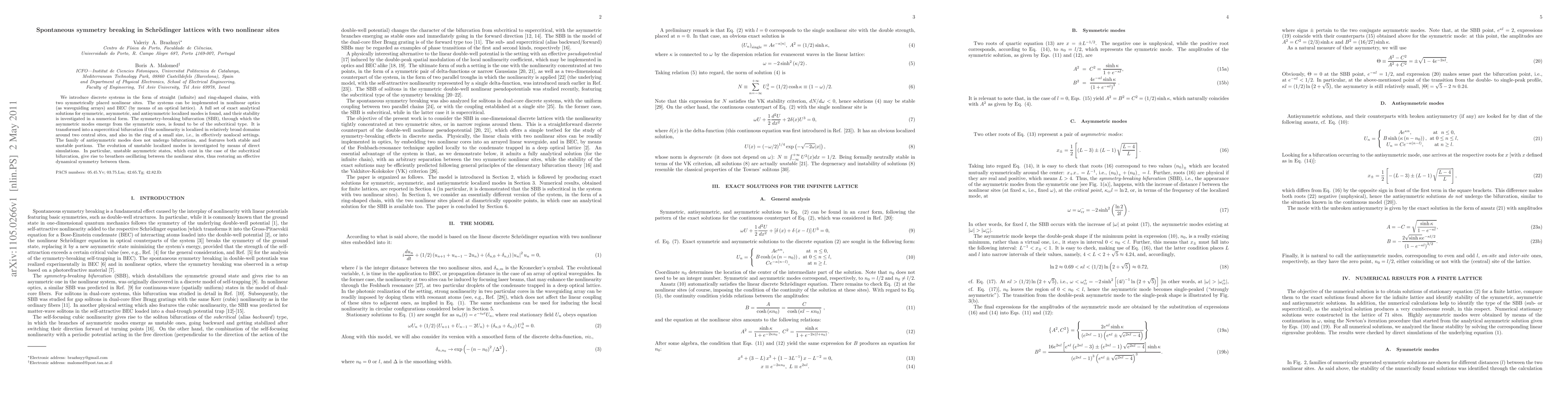 Researchers discovered a phenomenon called spontaneous symmetry breaking in systems with two nonlinear sites, leading to the emergence of asymmetric modes that can oscillate between these sites, restoring an effective symmetry.