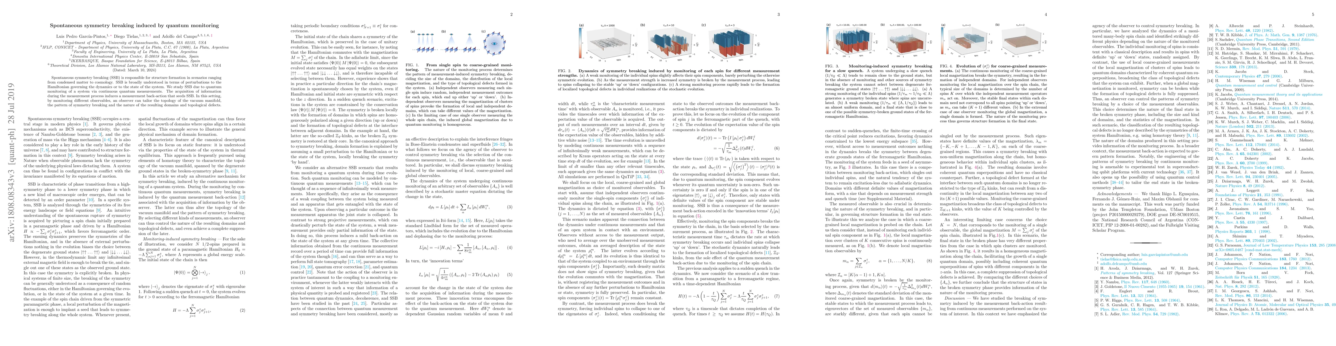Spontaneous symmetry breaking (SSB) is responsible for structure formation in scenarios ranging from condensed matter to cosmology. SSB is broadly understood in terms of perturbations to the Hamiltonian governing the dynamics or to the state of the system. We study SSB due to quantum monitoring of a system via continuous quantum measurements. The acquisition of information during the measurement process induces a measurement back-action that seeds SSB. In this setting, by monitoring different observables, an observer can tailor the topology of the vacuum manifold, the pattern of symmetry breaking and the nature of the resulting domains and topological defects.