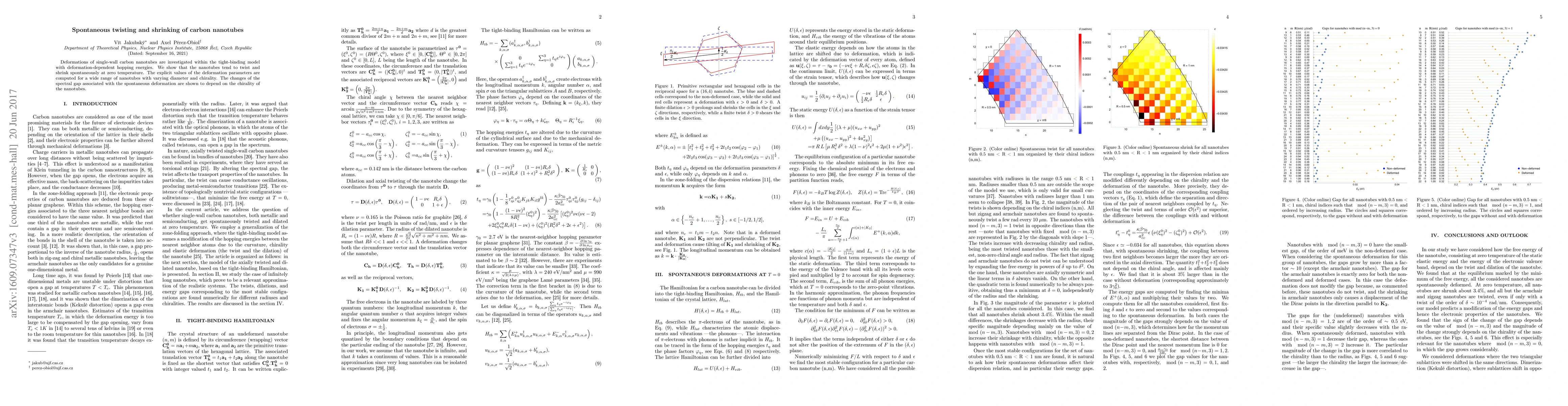 Researchers found that carbon nanotubes spontaneously twist and shrink at zero temperature due to deformation-dependent hopping energies. This twisting and shrinking depend on the nanotube's chirality.