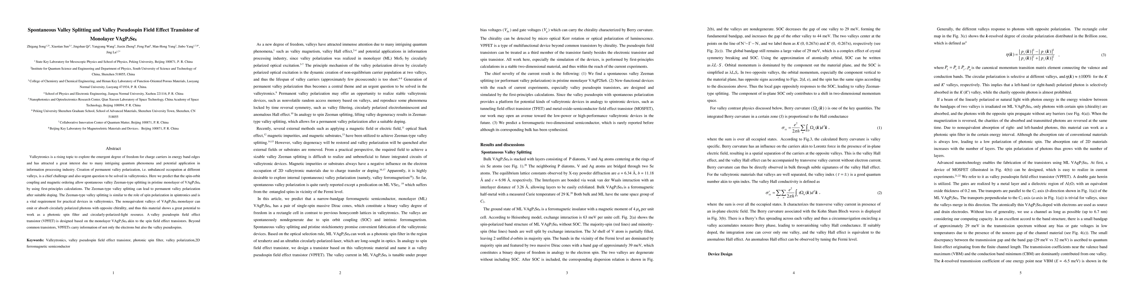This paper explores the spontaneous valley splitting in monolayer VAgP2Se6 due to spin-orbit coupling and magnetic ordering, predicting its potential for permanent valley polarization and applications in valleytronics. A valley pseudospin field effect transistor (VPFET) is proposed based on this material, extending information processing beyond conventional transistors by incorporating valley pseudospins.