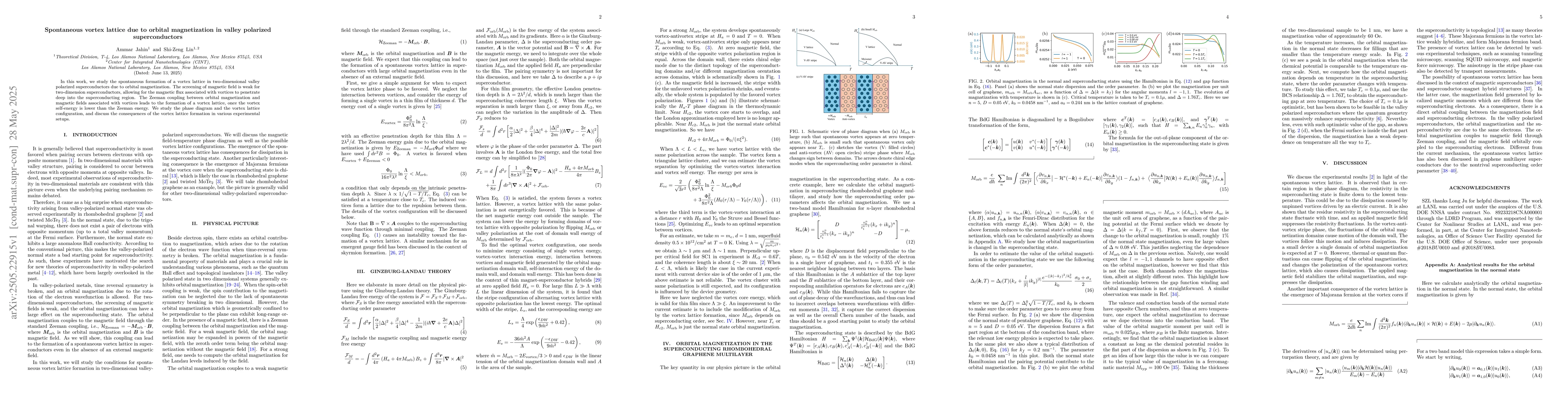 The paper presents a detailed analysis of the conditions under which a spontaneous vortex lattice forms in valley polarized superconductors due to orbital magnetization.