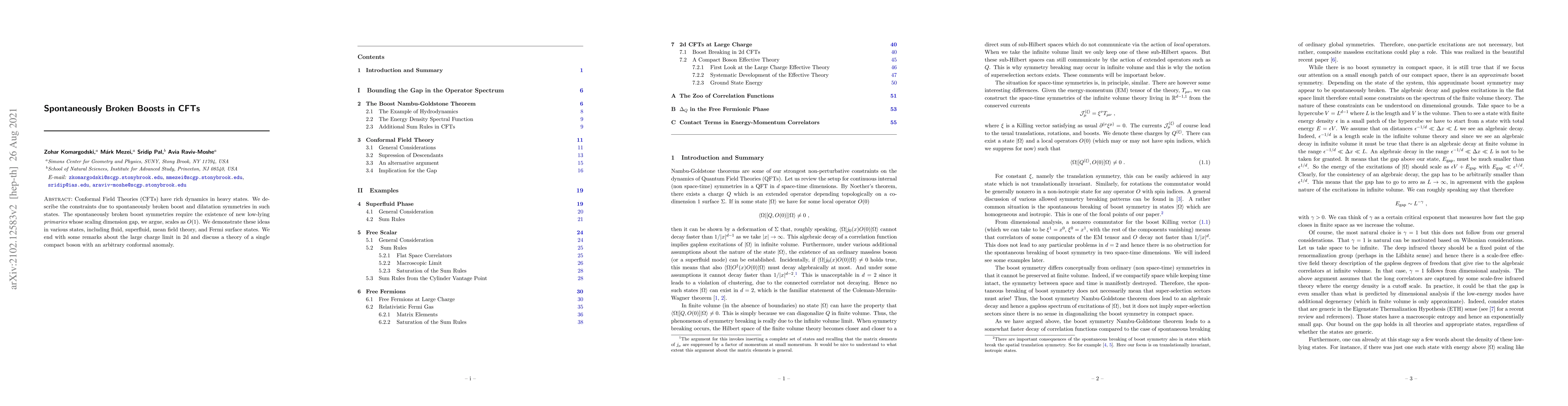 This paper explores the constraints imposed by spontaneously broken boost and dilatation symmetries in heavy states within Conformal Field Theories (CFTs), revealing new low-lying primary states with a scaling dimension gap of $O(1)$. It applies these insights across fluid, superfluid, mean field, and Fermi surface states, concluding with remarks on the large charge limit in 2d and a theory of a compact boson with conformal anomalies.