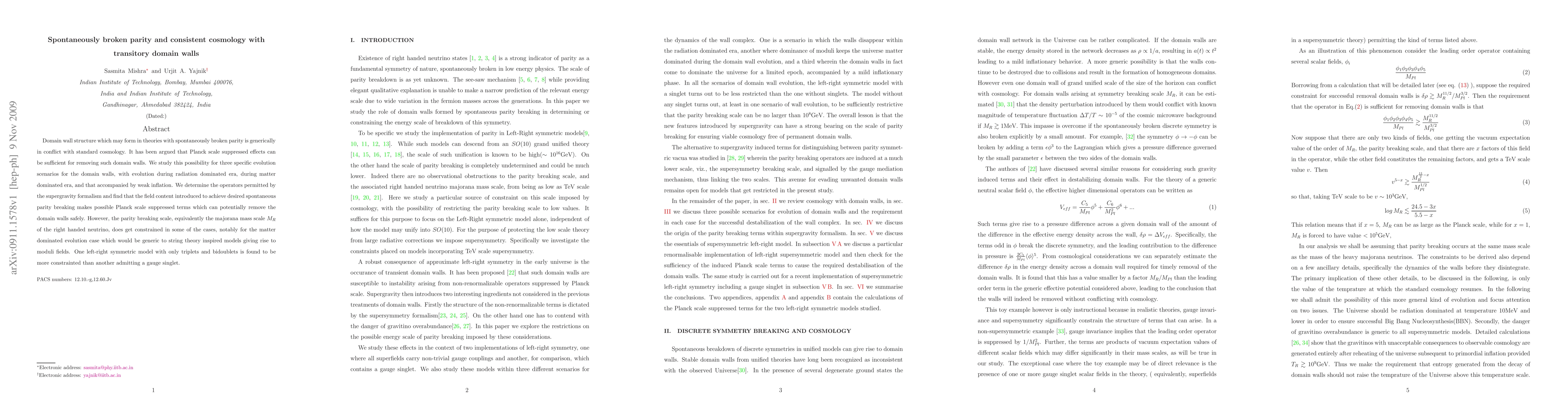 This paper investigates how domain walls, which can form in theories with spontaneously broken parity, can be removed without conflicting with standard cosmology, focusing on scenarios involving radiation, matter, and weak inflation. It finds that certain supergravity operators allow for Planck scale suppressed terms that can safely eliminate these domain walls, though the parity breaking scale is constrained in some cases, particularly for matter-dominated evolution typical in string theory models.