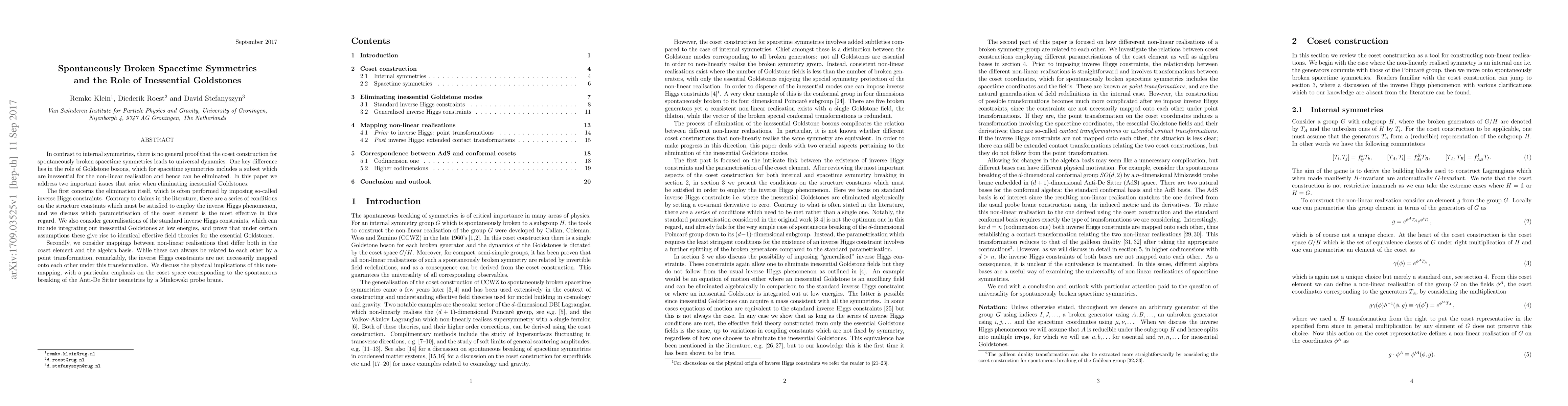 This paper investigates the dynamics of spontaneously broken spacetime symmetries, focusing on the elimination of inessential Goldstone bosons. It discusses the conditions required for the inverse Higgs mechanism and explores alternative formulations that yield identical effective field theories. Additionally, the paper examines how inverse Higgs constraints behave under transformations between non-linear realisations, highlighting implications for the spontaneous breaking of Anti-De Sitter symmetries.