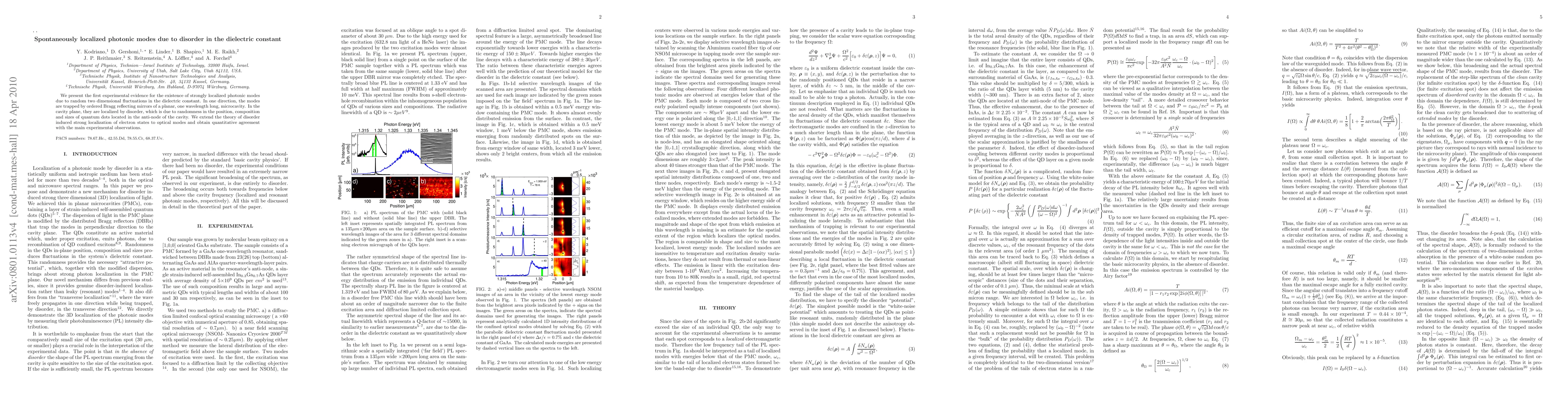 This paper provides experimental evidence for strongly localized photonic modes in a microcavity due to disorder from random fluctuations in the dielectric constant, caused by quantum dots. The theory of disorder-induced localization is extended to optical modes, showing quantitative agreement with the experimental observations.