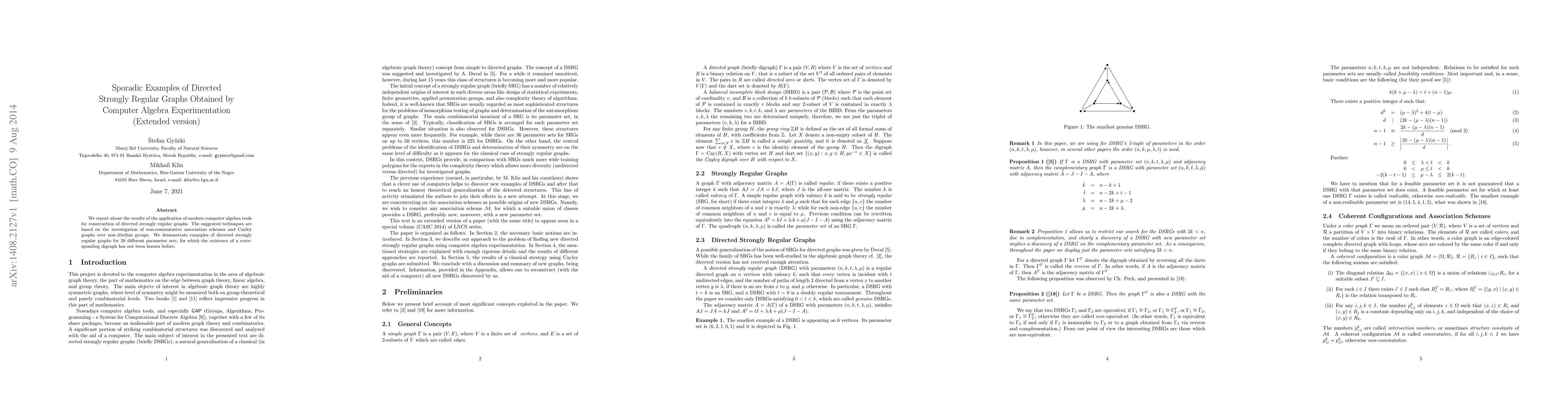 We report about the results of the application of modern computer algebra tools for construction of directed strongly regular graphs. The suggested techniques are based on the investigation of non-commutative association schemes and Cayley graphs over non-Abelian groups. We demonstrate examples of directed strongly regular graphs for 28 different parameter sets, for which the existence of a corresponding digraph has not been known before.