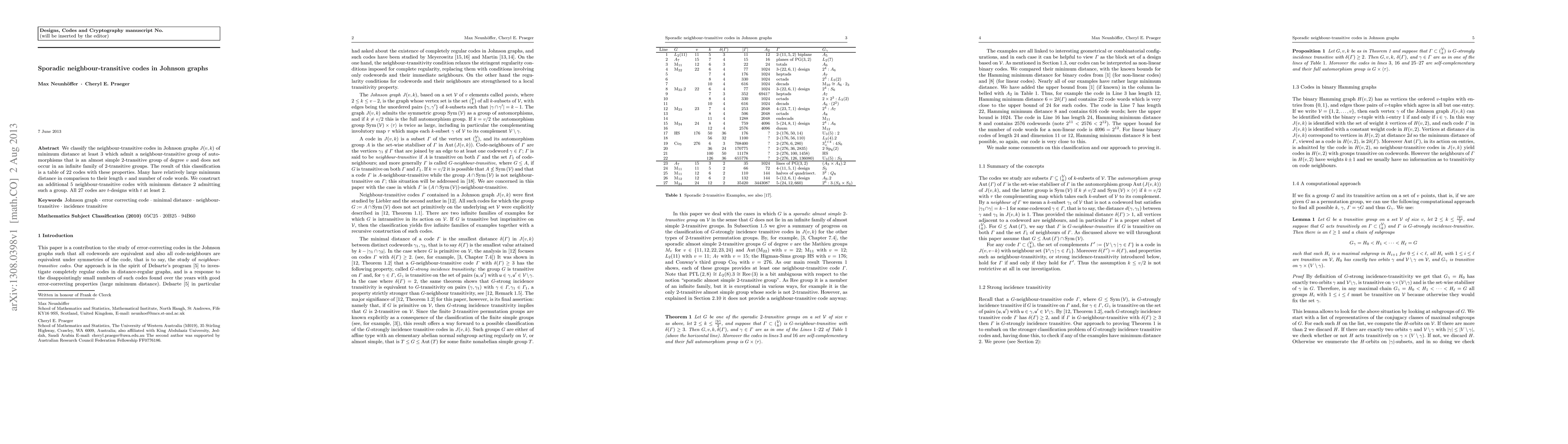We classify the neighbour-transitive codes in Johnson graphs J(v, k) of minimum distance at least three which admit a neighbour-transitive group of automorphisms that is an almost simple two-transitive group of degree v and does not occur in an infinite family of two-transitive groups. The result of this classification is a table of 22 codes with these properties. Many have relatively large minimum distance in comparison to their length v and number of code words. We construct an additional five neighbour-transitive codes with minimum distance two admitting such a group. All 27 codes are t-designs with t at least two.