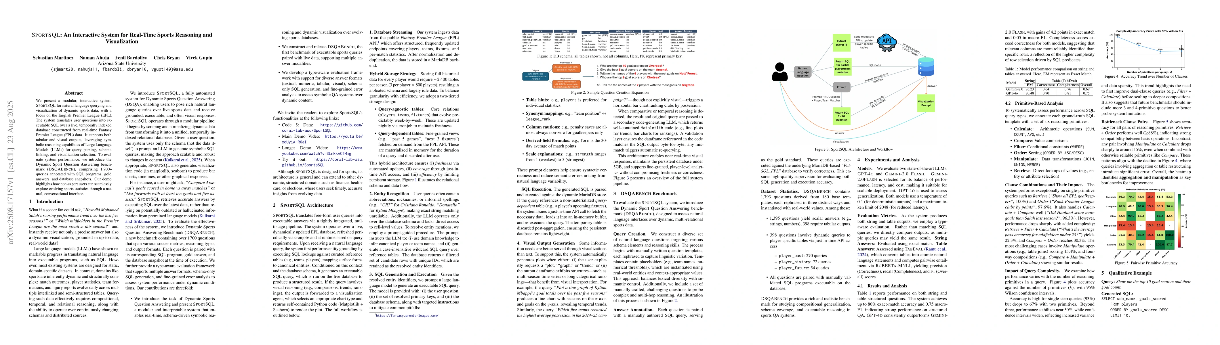 We present a modular, interactive system, SPORTSQL, for natural language querying and visualization of dynamic sports data, with a focus on the English Premier League (EPL). The system translates user questions into executable SQL over a live, temporally indexed database constructed from real-time Fantasy Premier League (FPL) data. It supports both tabular and visual outputs, leveraging the symbolic reasoning capabilities of Large Language Models (LLMs) for query parsing, schema linking, and visualization selection. To evaluate system performance, we introduce the Dynamic Sport Question Answering benchmark (DSQABENCH), comprising 1,700+ queries annotated with SQL programs, gold answers, and database snapshots. Our demo highlights how non-expert users can seamlessly explore evolving sports statistics through a natural, conversational interface.