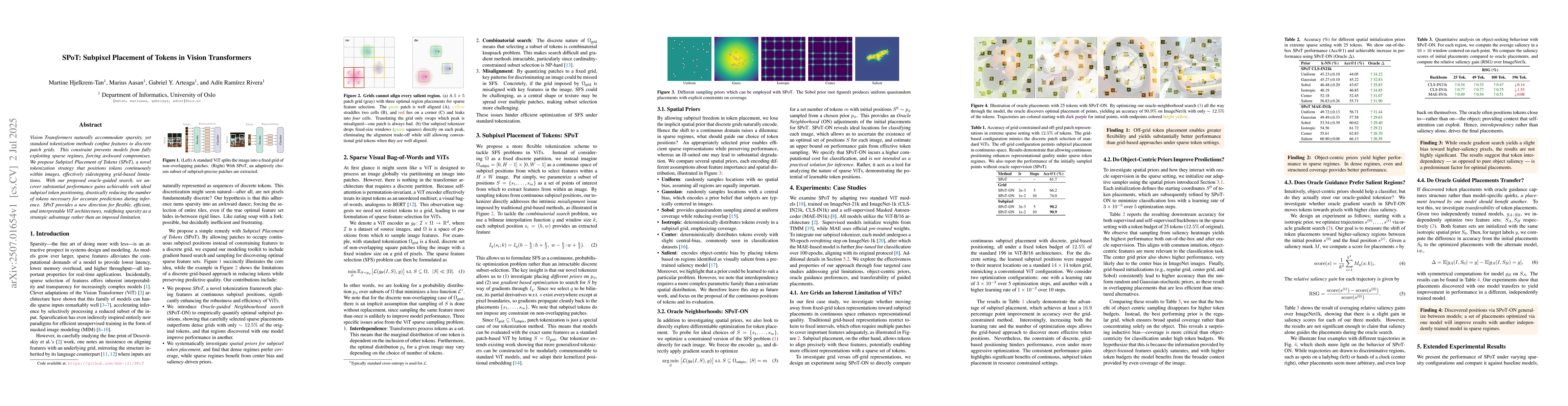 Vision Transformers naturally accommodate sparsity, yet standard tokenization methods confine features to discrete patch grids. This constraint prevents models from fully exploiting sparse regimes, forcing awkward compromises. We propose Subpixel Placement of Tokens (SPoT), a novel tokenization strategy that positions tokens continuously within images, effectively sidestepping grid-based limitations. With our proposed oracle-guided search, we uncover substantial performance gains achievable with ideal subpixel token positioning, drastically reducing the number of tokens necessary for accurate predictions during inference. SPoT provides a new direction for flexible, efficient, and interpretable ViT architectures, redefining sparsity as a strategic advantage rather than an imposed limitation.