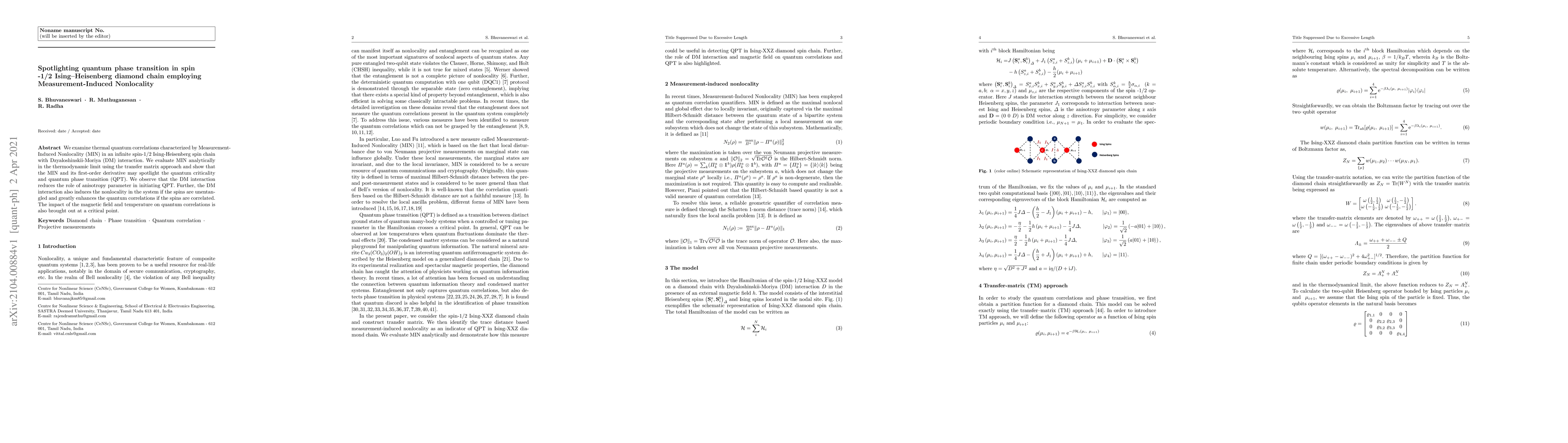 This paper investigates thermal quantum correlations via Measurement-Induced Nonlocality (MIN) in a spin-1/2 Ising-Heisenberg diamond chain, revealing that MIN and its derivative can highlight quantum criticality and phase transitions. The Dzyaloshinskii-Moriya interaction diminishes the role of anisotropy in initiating these transitions and enhances quantum correlations, especially in correlated spin states.
