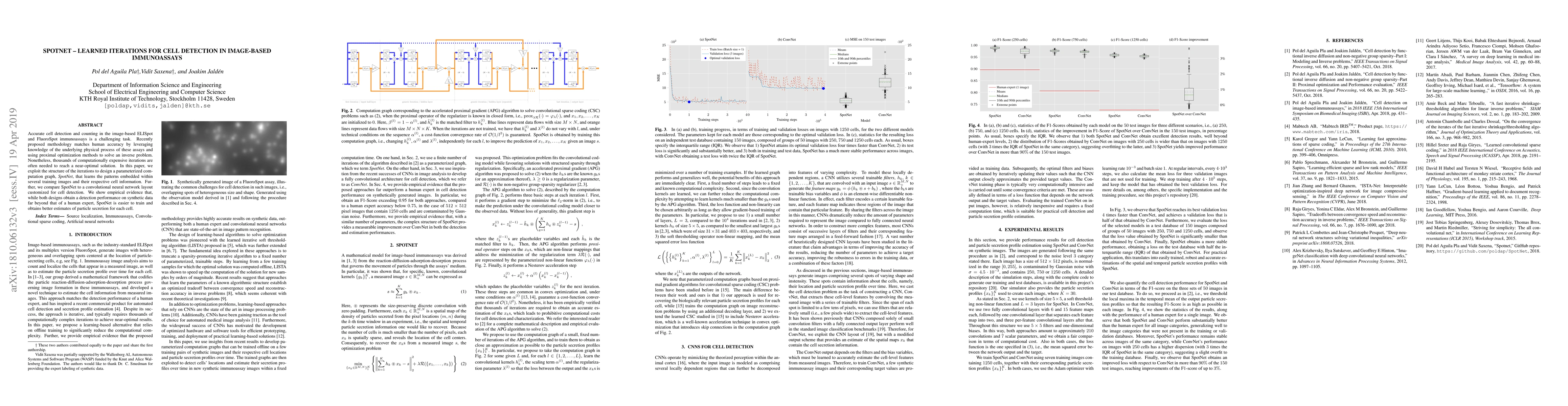 SpotNet learns iterations for efficient cell detection in image-based ELISpot and FluoroSpot assays, outperforming human accuracy and requiring fewer computationally expensive iterations compared to traditional methods. Empirical results show SpotNet is easier to train and provides better secretion estimates than a customized convolutional neural network.
