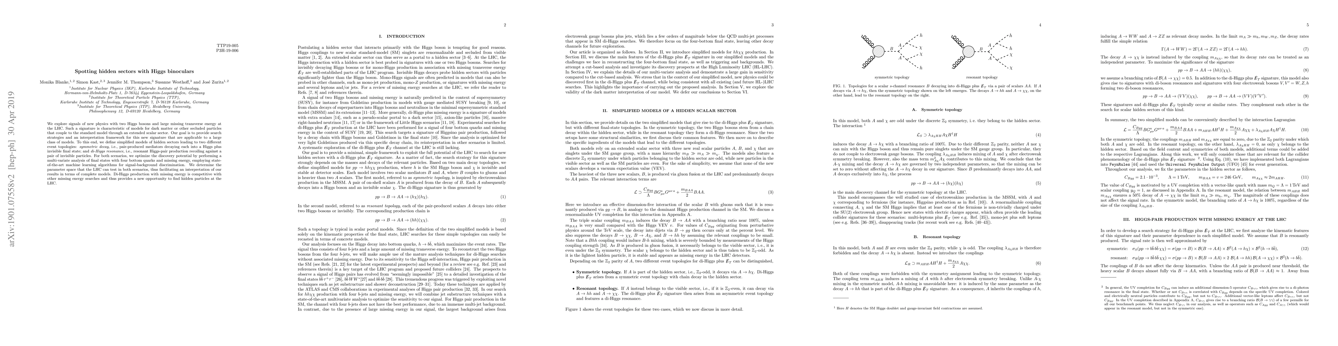 We explore signals of new physics with two Higgs bosons and large missing transverse energy at the LHC. Such a signature is characteristic of models for dark matter or other secluded particles that couple to the standard model through an extended scalar sector. Our goal is to provide search strategies and an interpretation framework for this new signature that are applicable to a large class of models. To this end, we define simplified models of hidden sectors leading to two different event topologies: symmetric decay, i.e., pair-produced mediators decaying each into a Higgs plus invisible final state; and di-Higgs resonance, i.e., resonant Higgs-pair production recoiling against a pair of invisible particles. For both scenarios, we optimize the discovery potential by performing a multi-variate analysis of final states with four bottom quarks and missing energy, employing state-of-the-art machine learning algorithms for signal-background discrimination. We determine the parameter space that the LHC can test in both scenarios, thus facilitating an interpretation of our results in terms of complete models. Di-Higgs production with missing energy is competitive with other missing energy searches and thus provides a new opportunity to find hidden particles at the LHC.