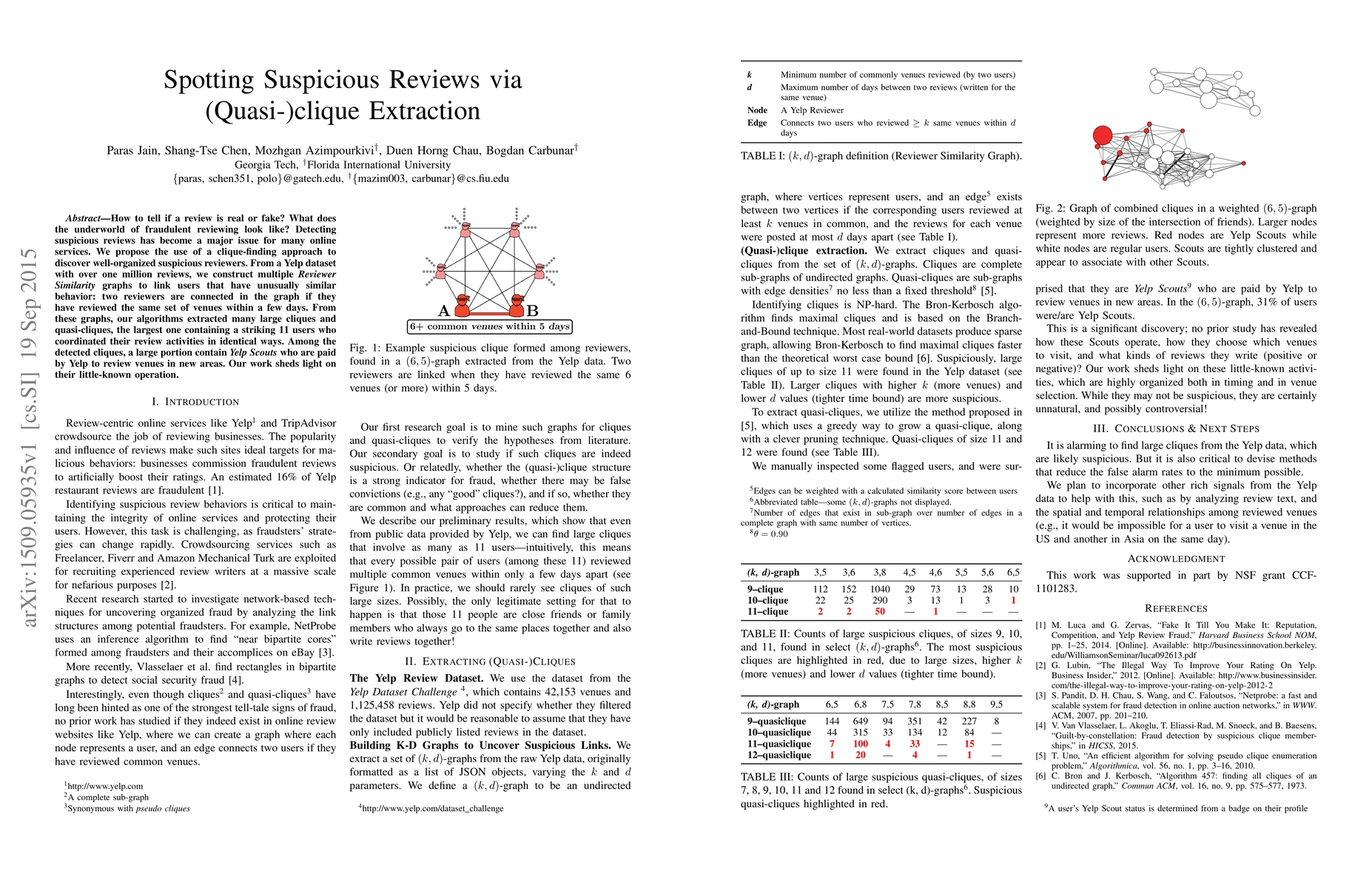 How to tell if a review is real or fake? What does the underworld of fraudulent reviewing look like? Detecting suspicious reviews has become a major issue for many online services. We propose the use of a clique-finding approach to discover well-organized suspicious reviewers. From a Yelp dataset with over one million reviews, we construct multiple Reviewer Similarity graphs to link users that have unusually similar behavior: two reviewers are connected in the graph if they have reviewed the same set of venues within a few days. From these graphs, our algorithms extracted many large cliques and quasi-cliques, the largest one containing a striking 11 users who coordinated their review activities in identical ways. Among the detected cliques, a large portion contain Yelp Scouts who are paid by Yelp to review venues in new areas. Our work sheds light on their little-known operation.