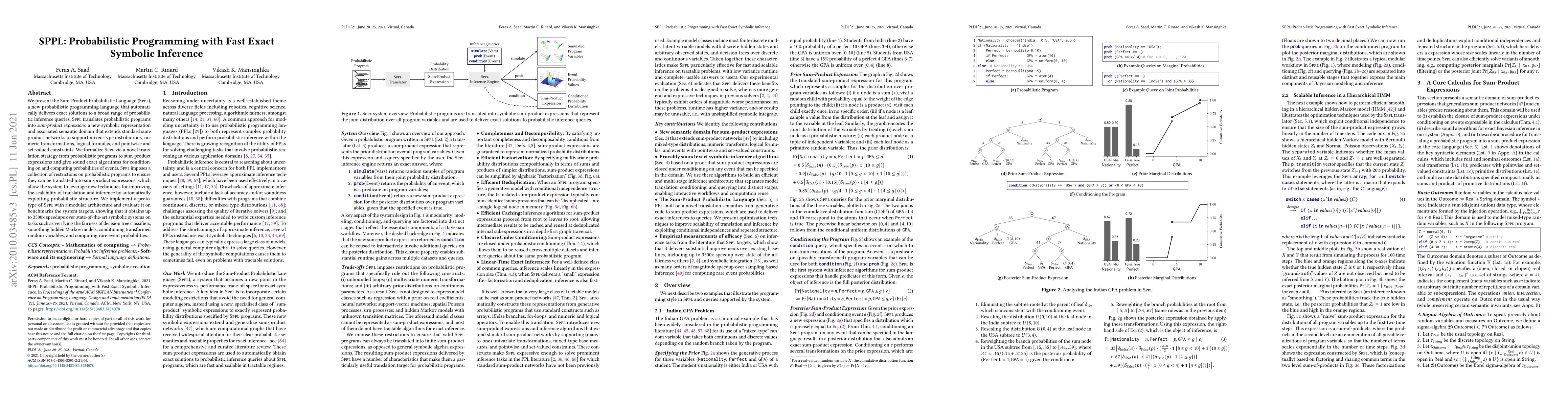 SPPL is a novel probabilistic programming language that translates programs into sum-product expressions for exact inference, achieving significant speedups on various tasks. The system employs a modular architecture and outperforms existing symbolic systems by up to 3500x in scalability.