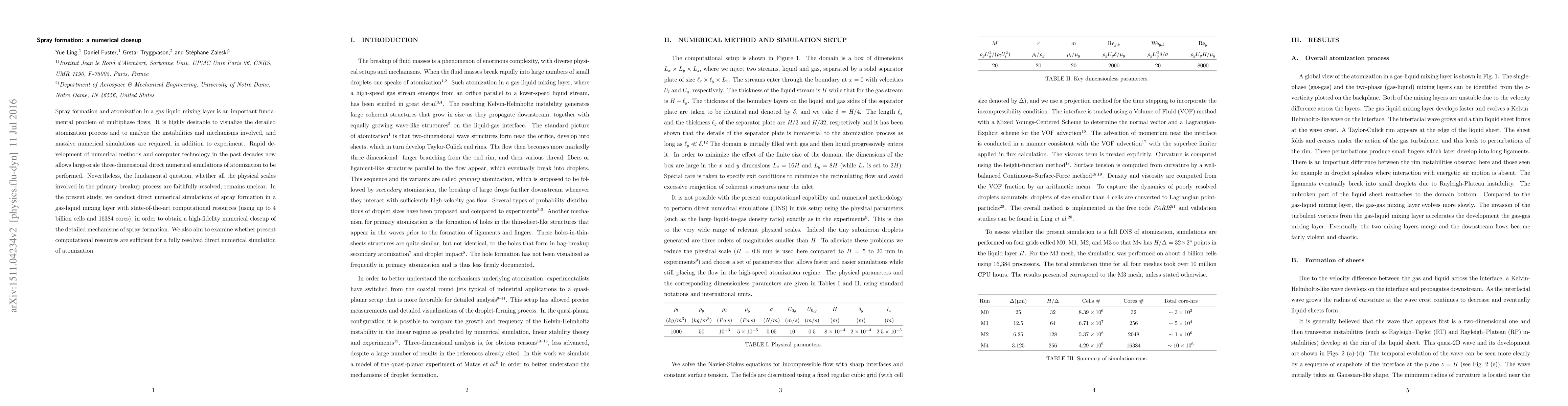 Researchers conducted high-fidelity numerical simulations of spray formation using advanced computational resources to study the detailed mechanisms involved. They aimed to determine if current computing power is sufficient for a fully resolved simulation of atomization.