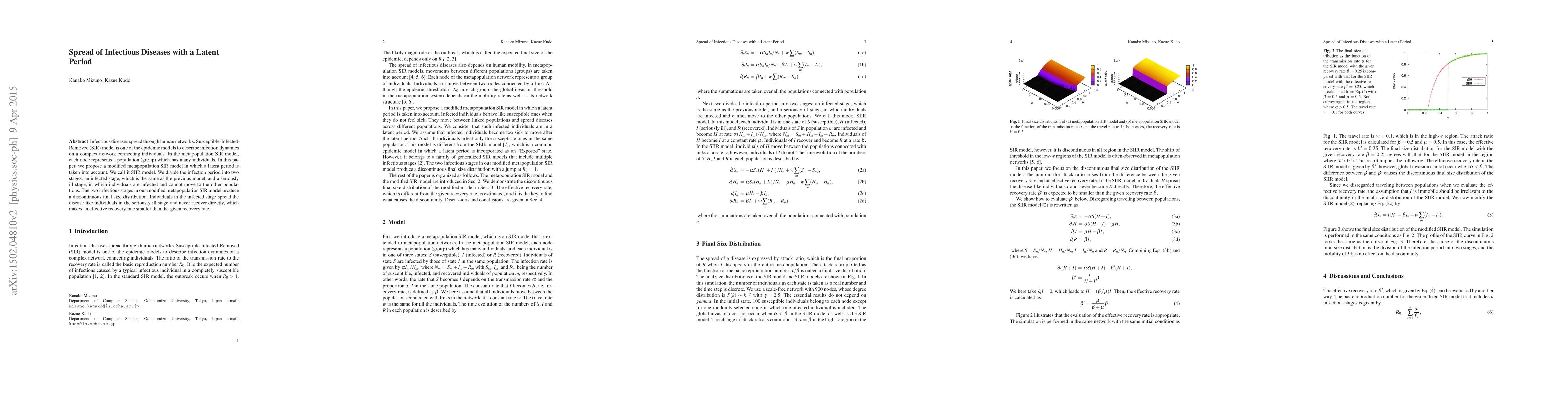This work extends existing metapopulation SIR models by incorporating a latent period, resulting in a novel SIIR model that captures additional complexity in disease spread dynamics.