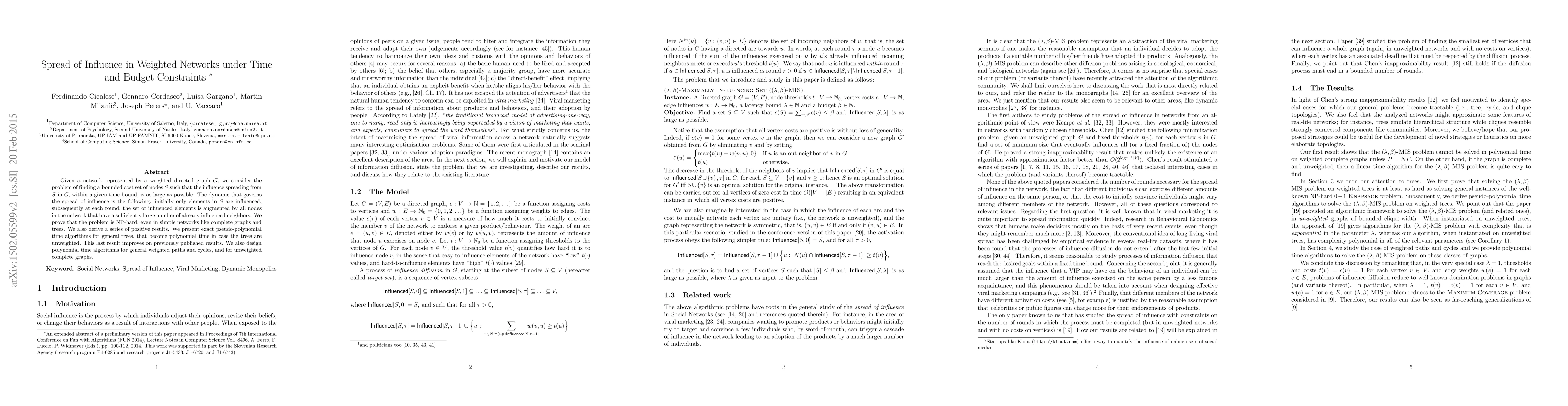 Researchers explored how influence spreads in weighted networks under time and budget constraints, finding that even simple networks are NP-hard to solve efficiently, but developed algorithms for specific cases.