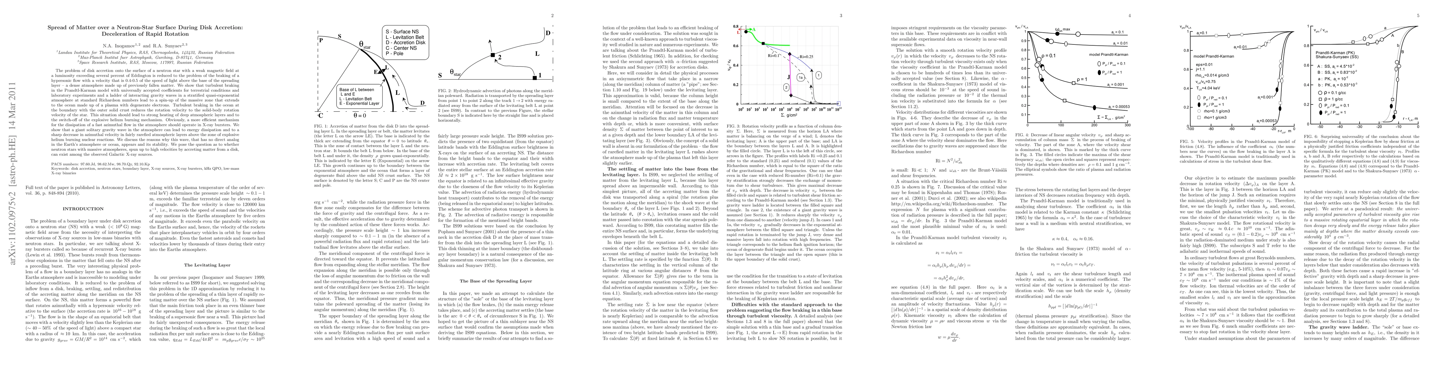 The problem of disk accretion onto the surface of a neutron star with a weak magnetic field at a luminosity exceeding several percent of Eddington is reduced to the problem of the braking of a hypersonic flow with a velocity that is 0.4-0.5 of the speed of light above the base of the spreading layer -- a dense atmosphere made up of previously fallen matter. We show that turbulent braking in the Prandtl-Karman model with universally accepted coefficients for terrestrial conditions and laboratory experiments and a ladder of interacting gravity waves in a stratified quasi-exponential atmosphere at standard Richardson numbers lead to a spin-up of the massive zone that extends to the ocean made up of a plasma with degenerate electrons. Turbulent braking in the ocean at the boundary with the outer solid crust reduces the rotation velocity to the solid-body rotation velocity of the star. This situation should lead to strong heating of deep atmospheric layers and to the switch-off of the explosive helium burning mechanism. Obviously, a more efficient mechanism for the dissipation of a fast azimuthal flow in the atmosphere should operate in X-ray bursters. We show that a giant solitary gravity wave in the atmosphere can lead to energy dissipation and to a sharp decrease in azimuthal velocity in fairly rarefied atmospheric layers above the zone of explosive helium burning nuclear reactions. We discuss the reasons why this wave, that has no direct analog in the Earth's atmosphere or ocean, appears and its stability. We pose the question as to whether neutron stars with massive atmospheres, spun up to high velocities by accreting matter from a disk, can exist among the observed Galactic X-ray sources.