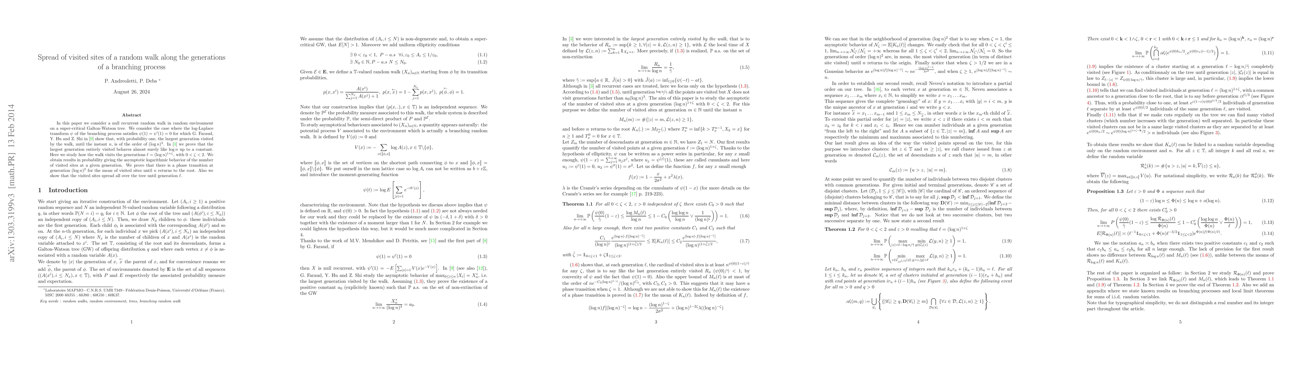 This paper studies how a random walk on a branching process tree visits its sites over generations, showing a phase transition in the number of visited sites at generation $( heta n)^2$.