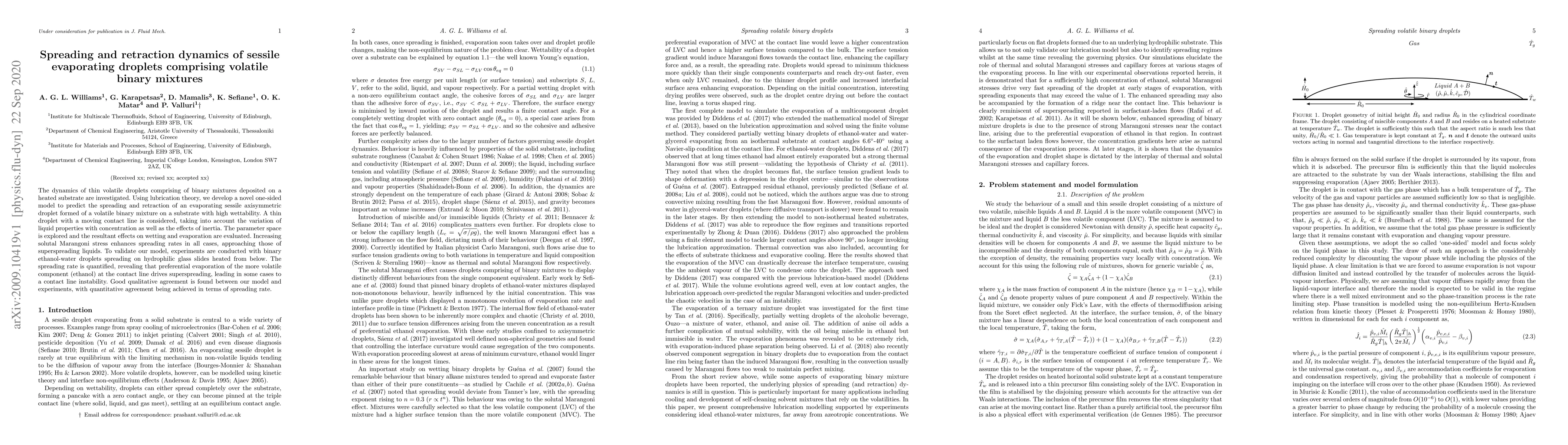 The dynamics of thin volatile droplets comprising of binary mixtures deposited on a heated substrate are investigated. Using lubrication theory, we develop a novel one-sided model to predict the spreading and retraction of an evaporating sessile axisymmetric droplet formed of a volatile binary mixture on a substrate with high wettability. A thin droplet with a moving contact line is considered, taking into account the variation of liquid properties with concentration as well as the effects of inertia. The parameter space is explored and the resultant effects on wetting and evaporation are evaluated. Increasing solutal Marangoni stress enhances spreading rates in all cases, approaching those of superspreading liquids. To validate our model, experiments are conducted with binary ethanol-water droplets spreading on hydrophilic glass slides heated from below. The spreading rate is quantified, revealing that preferential evaporation of the more volatile component (ethanol) at the contact line drives superspreading, leading in some cases to a contact line instability. Good qualitative agreement is found between our model and experiments, with quantitative agreement being achieved in terms of spreading rate.