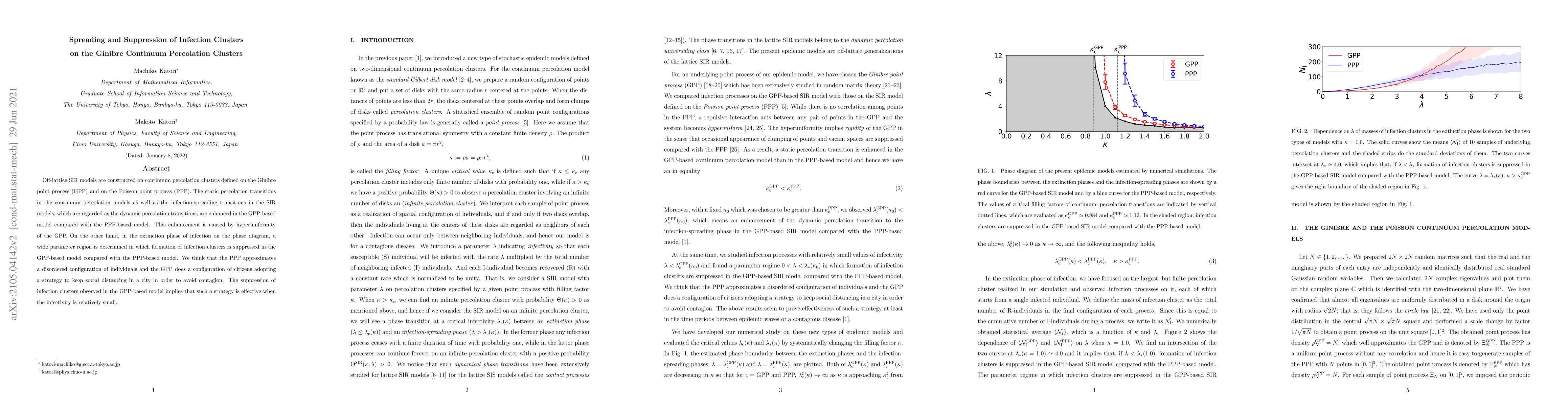 The research constructs off-lattice SIR models on continuum percolation clusters defined on the Ginibre Point Process (GPP) and Poisson Point Process (PPP). It compares static percolation transitions in these models, finding that GPP-based models show enhanced transitions due to hyperuniformity, compared to PPP-based models.