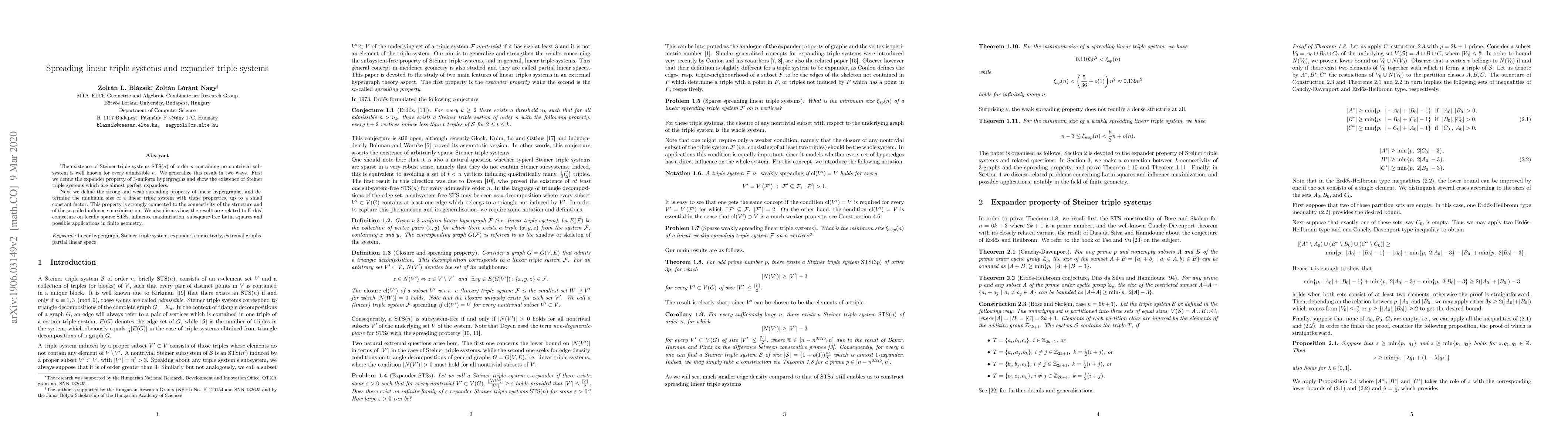 This paper generalizes the existence of Steiner triple systems without nontrivial subsystems, introducing the concept of expander triple systems and proving their existence. It also explores the spreading properties of linear triple systems, determining their minimum size and discussing connections to Erdős' conjecture and applications in finite geometry.