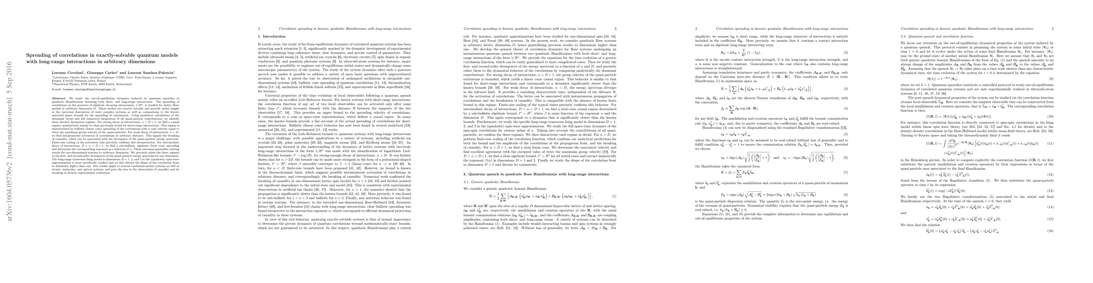 quadratic Hamiltonians featuring both short- and long-range interactions. The