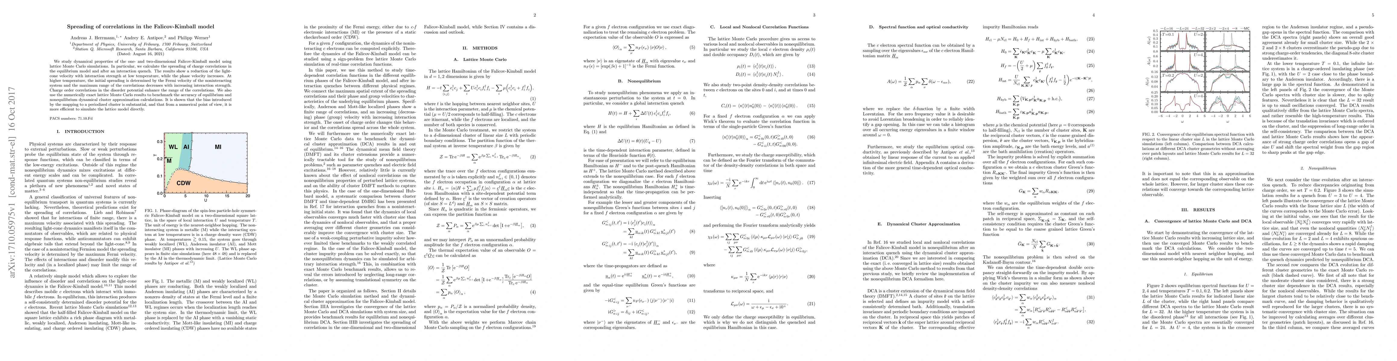 This study investigates the spreading of charge correlations in the Falicov-Kimball model via lattice Monte Carlo simulations, revealing a reduction in light-cone velocity with interaction strength at low temperatures and a dependence on Fermi velocity at higher temperatures. The research also benchmarks dynamical cluster approximation methods against Monte Carlo results, highlighting significant biases in the approximations.
