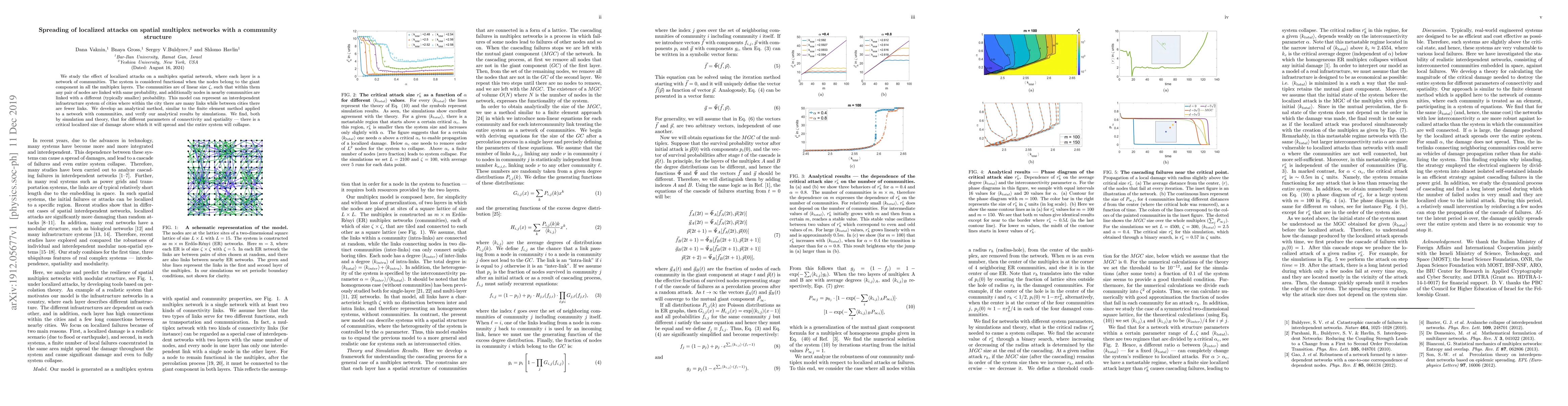 This research analyzes the impact of localized attacks on multiplex spatial networks with a community structure, finding a critical damage size beyond which the entire system collapses. The methodology combines analytical modeling akin to the finite element method with simulations, applicable to systems like interconnected city infrastructures.