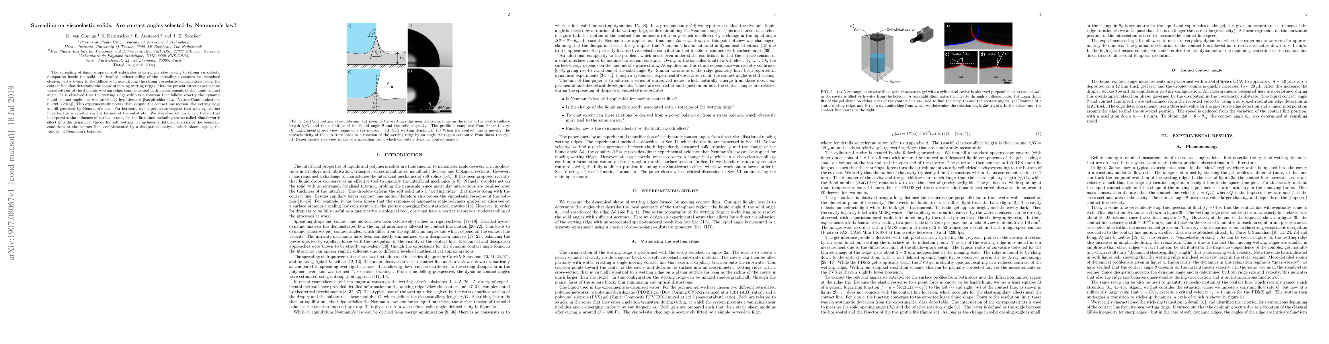 This research demonstrates that the spreading dynamics of liquid drops on viscoelastic solids follow Neumann's law, as evidenced by the observed rotation of the wetting ridge aligning with the dynamic liquid contact angle. Additionally, it proposes a new theoretical framework incorporating surface strain effects to better understand the behavior of moving contact lines on soft substrates.