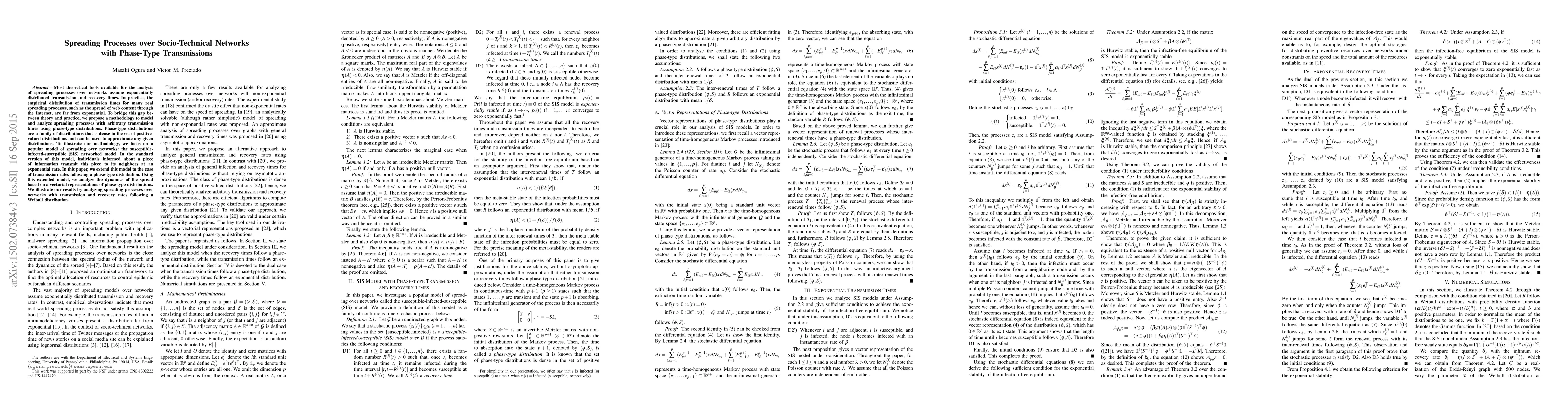 Researchers propose a new method to model spreading processes over networks using phase-type distributions, which can approximate any given distribution, allowing for more realistic analysis of real-world scenarios.