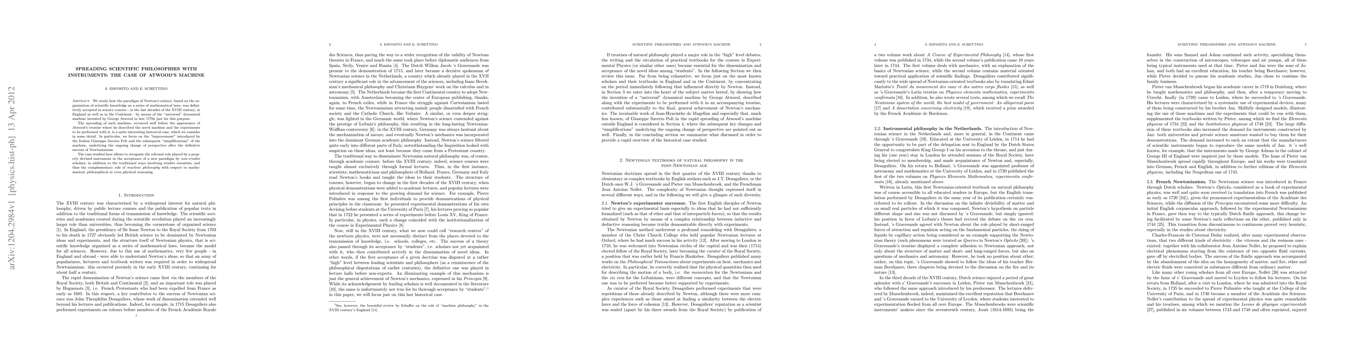 We study how the paradigm of Newton's science, based on the organization of scientific knowledge as a series of mathematical laws, was definitively accepted in science courses - in the last decades of the XVIII century, in England as well as in the Continent - by means of the "universal" dynamical machine invented by George Atwood in late 1770s just for this purpose. The spreading of such machine, occurred well before the appearance of Atwood's treatise where he described the novel machine and the experiments to be performed with it, is a quite interesting historical case, which we consider in some detail. In particular, we focus on the "improvement" introduced by the Italian Giuseppe Saverio Poli and the subsequent "simplifications" of the machine, underlying the ongoing change of perspective after the definitive success of Newtonianism. The case studied here allows to recognize the relevant role played by a properly devised instrument in the acceptance of a new paradigm by non-erudite scholars, in addition to the traditional ways involving erudite scientists, and thus the complementary role of machine philosophy with respect to mathematical, philosophical or even physical reasoning.