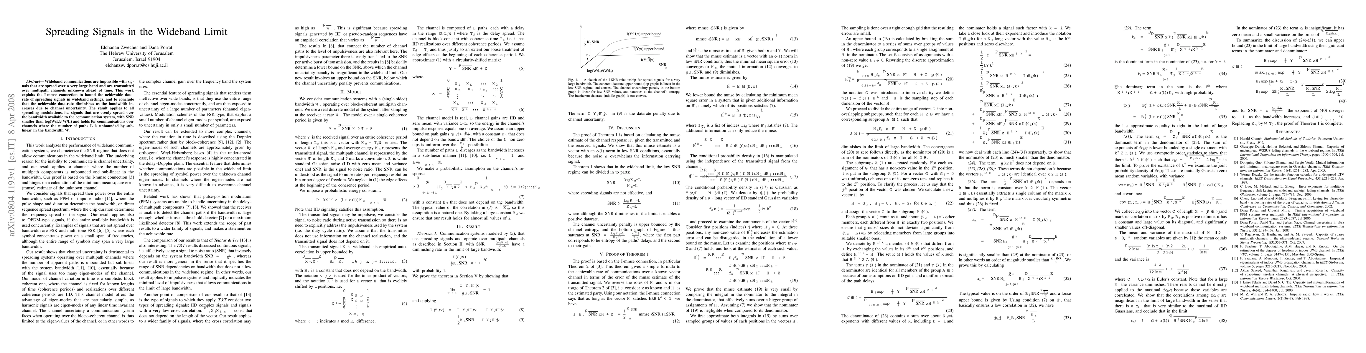 This paper explores the limitations of wideband communications with spread signals over multipath channels, demonstrating that achievable data-rate decreases with increasing bandwidth due to channel uncertainty. The findings apply universally to all spreading modulations under certain SNR conditions.