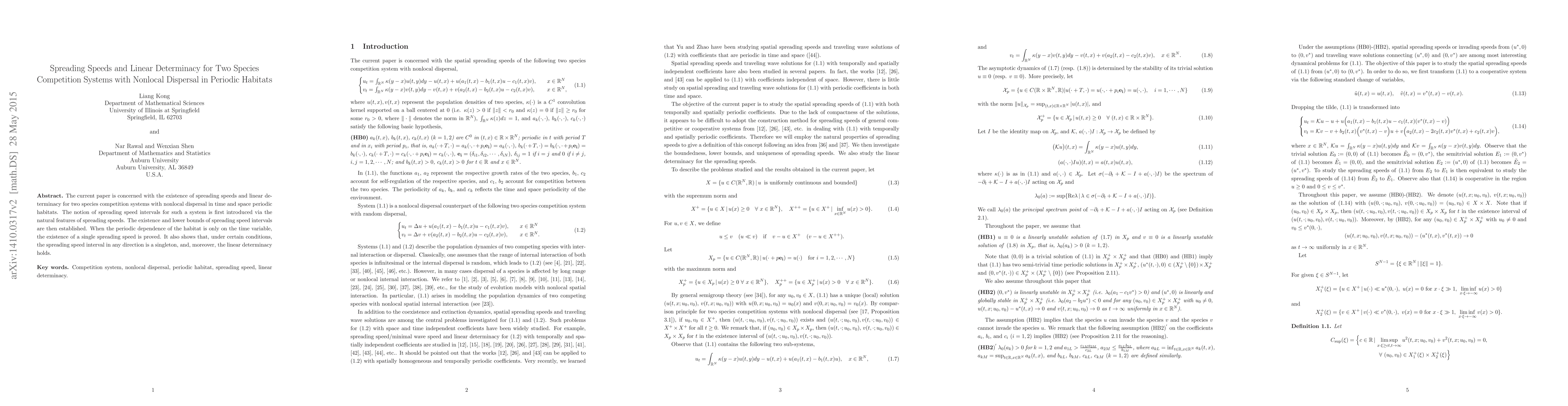 This paper investigates the spreading speeds and linear determinacy for two-species competition systems with nonlocal dispersal in periodically varying habitats. It establishes the existence and lower bounds of spreading speed intervals and proves that under certain conditions, the spreading speed is unique and linearly determinable.