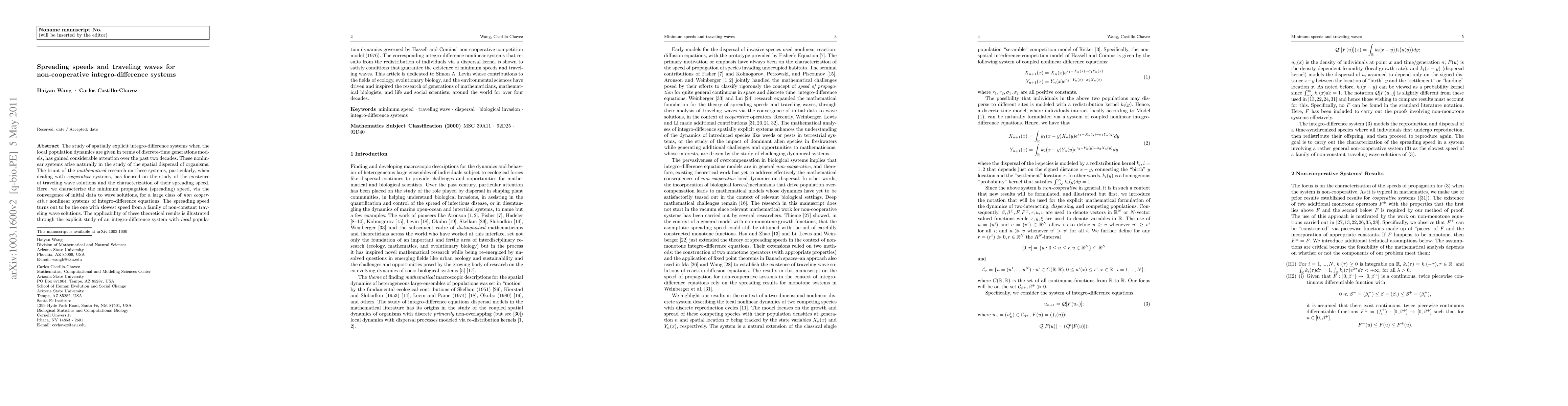 The development of macroscopic descriptions for the joint dynamics and behavior of large heterogeneous ensembles subject to ecological forces like dispersal remains a central challenge for mathematicians and biological scientists alike. Over the past century, specific attention has been directed to the role played by dispersal in shaping plant communities, or on the dynamics of marine open-ocean and intertidal systems, or on biological invasions, or on the spread of disease, to name a few. Mathematicians and theoreticians, starting with the efforts of researchers that include Aronson, Fisher, Kolmogorov, Levin, Okubo, Skellam, Slobodkin, Weinberger and many others, set the foundation of a fertile area of research at the interface of ecology, mathematics, population biology and evolutionary biology. Integrodifference systems, the subject of this manuscript, arise naturally in the study of the spatial dispersal of organisms whose local population dynamics are prescribed by models with discrete generations. The brunt of the mathematical research has focused on the the study of existence traveling wave solutions and characterizations of the spreading speed particularly, in the context of cooperative systems. In this paper, we characterize the spreading speed for a large class of non cooperative systems, all formulated in terms of integrodifference equations, by the convergence of initial data to wave solutions. In this setting, the spreading speed is characterized as the slowest speed of a family of non-constant traveling wave solutions. Our results are applied to a specific non-cooperative competition system in detail.