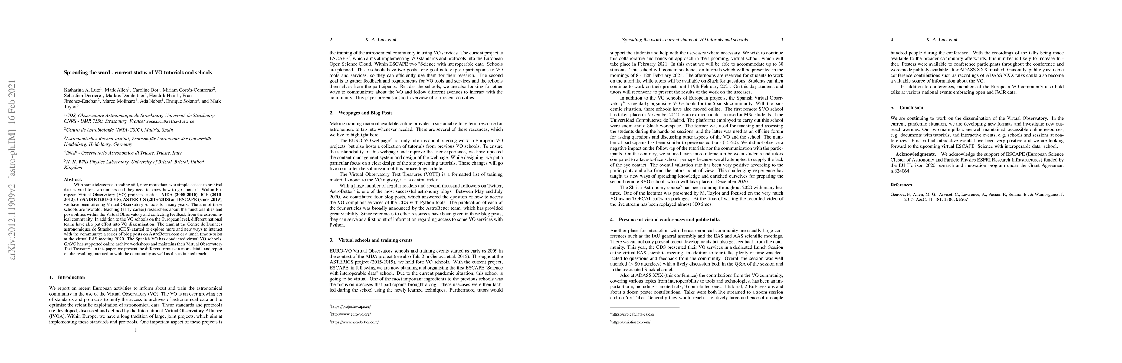Researchers review European Virtual Observatory schools and national initiatives to disseminate astronomical knowledge, highlighting the impact of online tutorials on the community. They provide an overview of formats used, community engagement, and reach of these educational efforts.